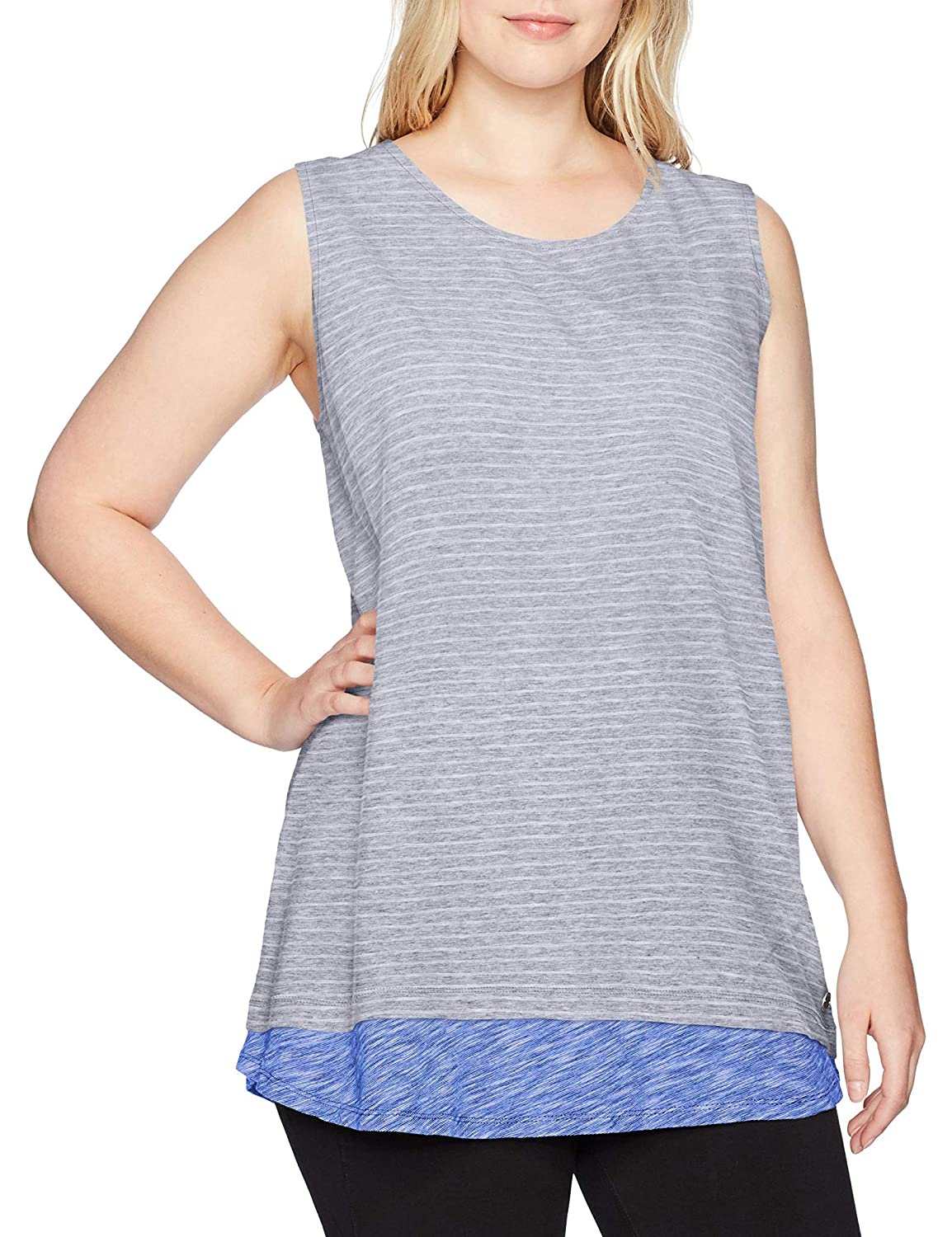 Calvin Klein Performance Women's Plus Size City Streets Stripe Double Layer Tank (Grey, 1X)