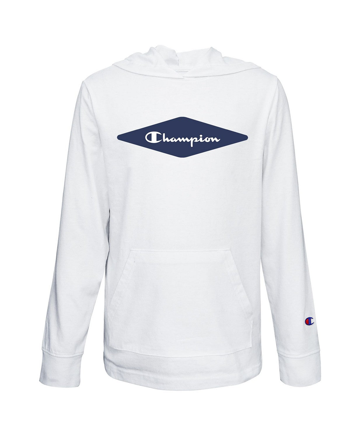 Champion Big Boy's Athletic Diamond Script Jersey Hoodie, White, L
