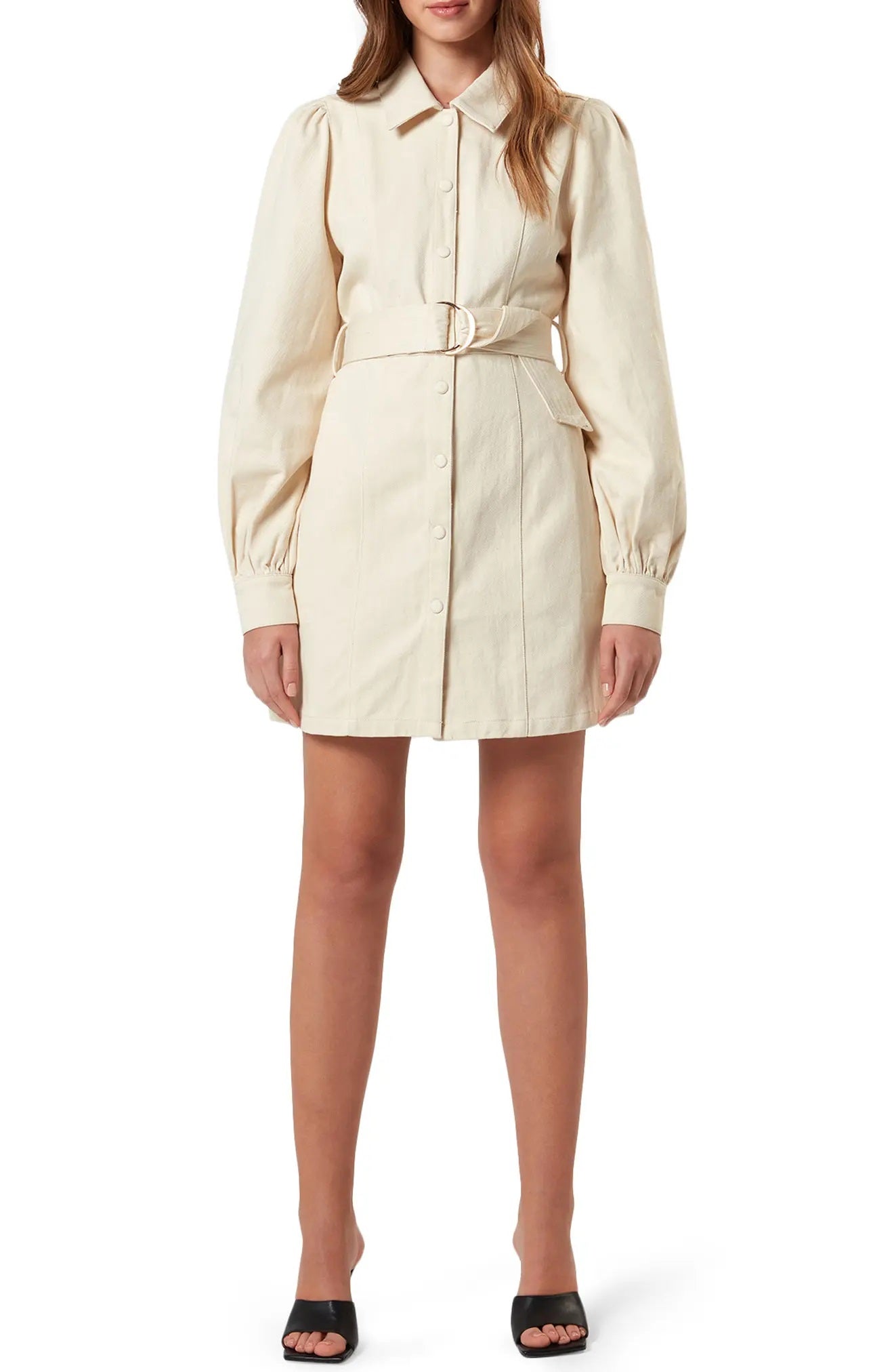 Play for the win wearing this mini shirtdress cut from corduroy, framed with puff sleeves and cinched by a wide D-ring belt.