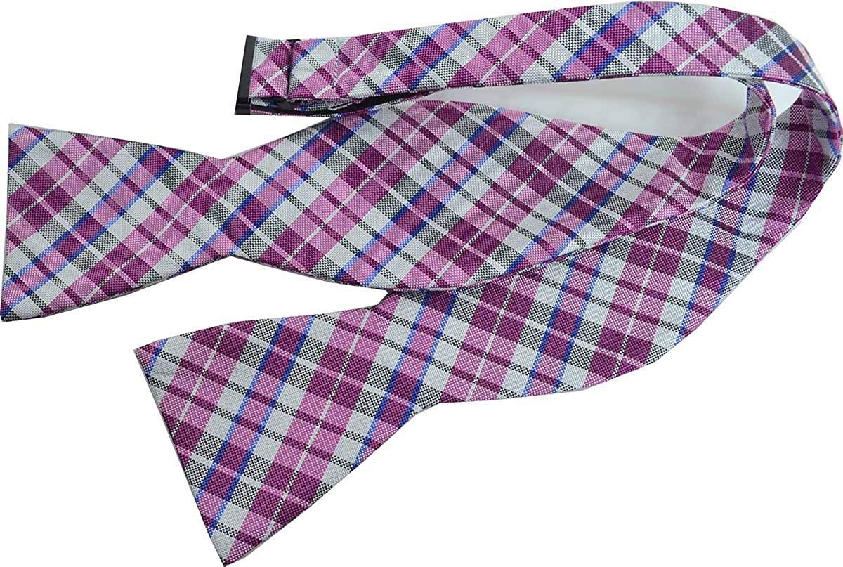 Countess Mara Men's To-Tie Plaid Print Silk Blend Bow Tie, White Plaid