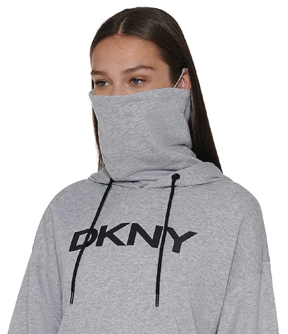 DKNY Sport Women's Face Mask Hooded Sweatshirt, Pearl Grey Heather, XL