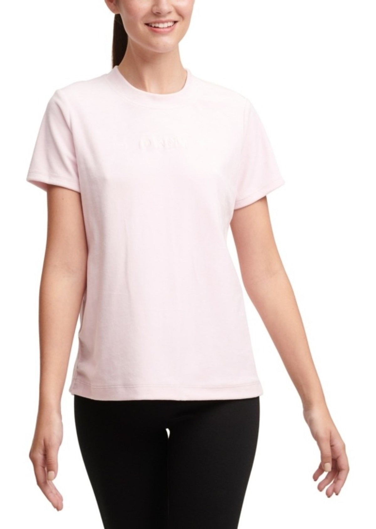 DKNY Sport Women's Soft Plush Velour Logo Crewneck T-Shirt, Pink, M