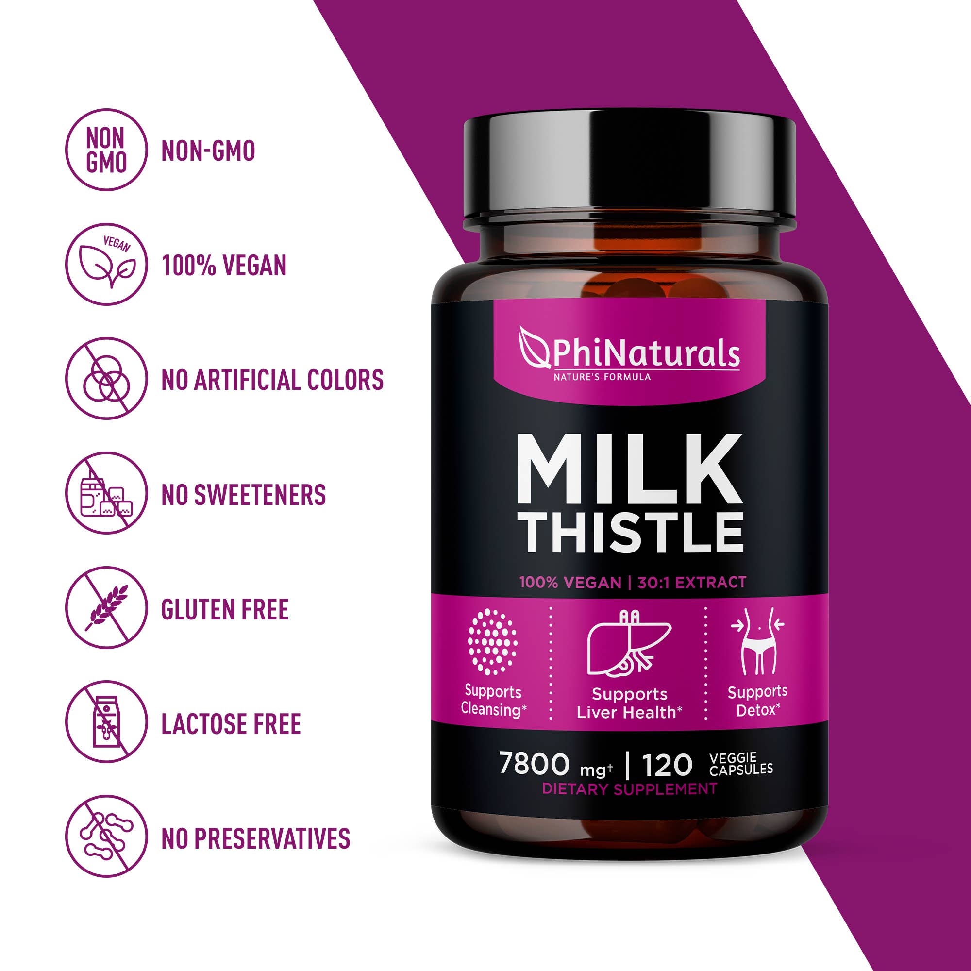 Phi Naturals Milk Thistle is a 30:1 concentrated extract, giving you 30 times the amount of beneficial compound per serving.