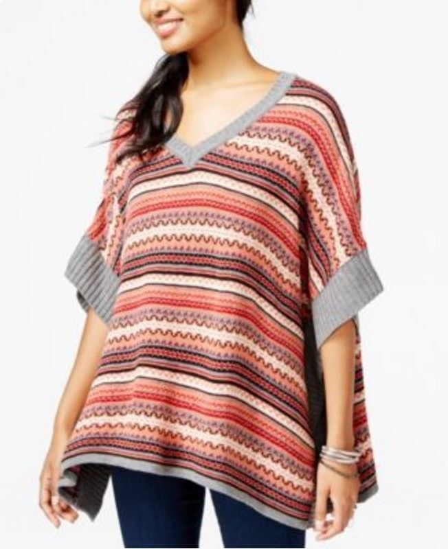 Freshman Junior's Striped V-Neck Poncho Sweater, Multi, XS