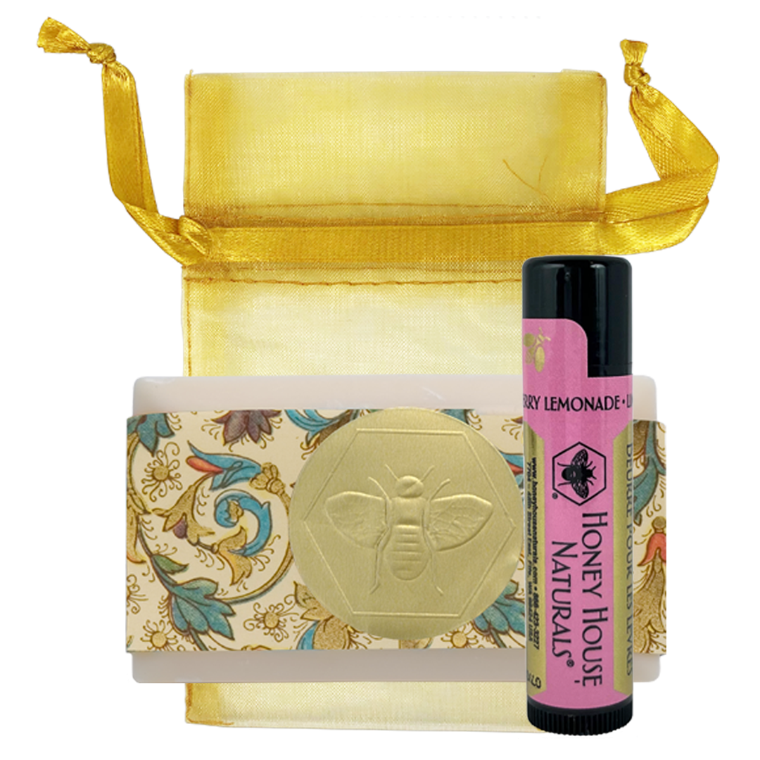 3 Varieties: 1 – 1oz Soap, 1 – Lip Butter Tube in an Organza Bag