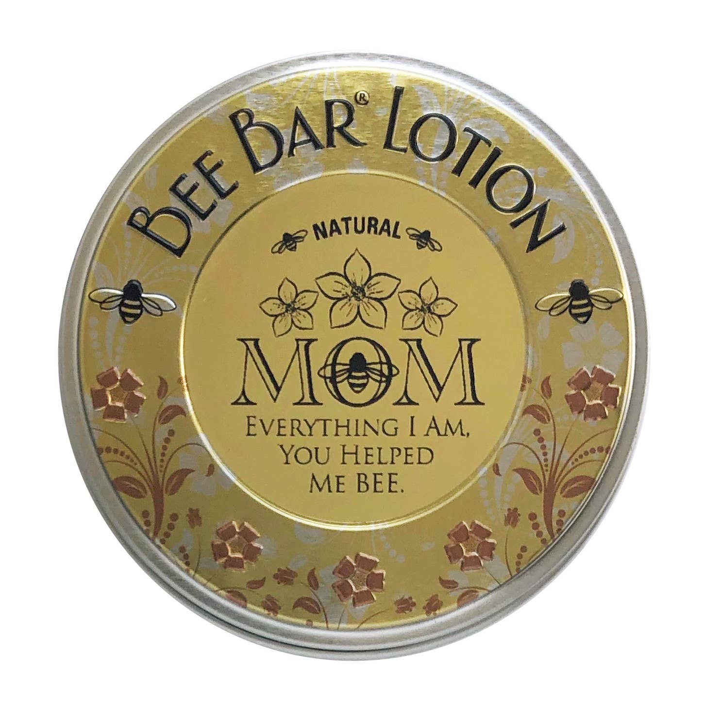 Great Mother's Day Gift. This Sentiment Bee Bar Lotion especially for your mom is simply the Large Bee Bar Lotion packaged with a sweet Sentiment message. Hand wrapped and in a unique, embossed tin (large 2oz) that can be the perfect gift to bring cheer and smiles. The Bee Bars are a marvelous solid lotion bar that is our TOP SELLING PRODUCT.