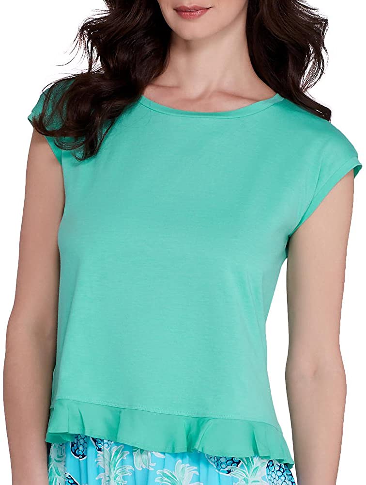 Hue Women's Cap Sleeves Flounce-Hem Pajama Top, Jade, Large