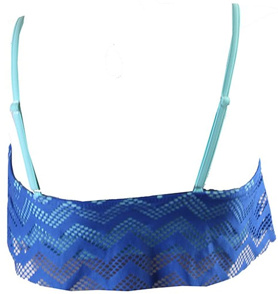 Hula Honey Blue Chevron Crochet Flounce Bikini Top size Small. Brand new with tags. Scoop neckline. Removable adjustable over the shoulder straps. Removable soft cups. All over chevron mesh overlay. Top only. 81% nylon, 19% spandex.