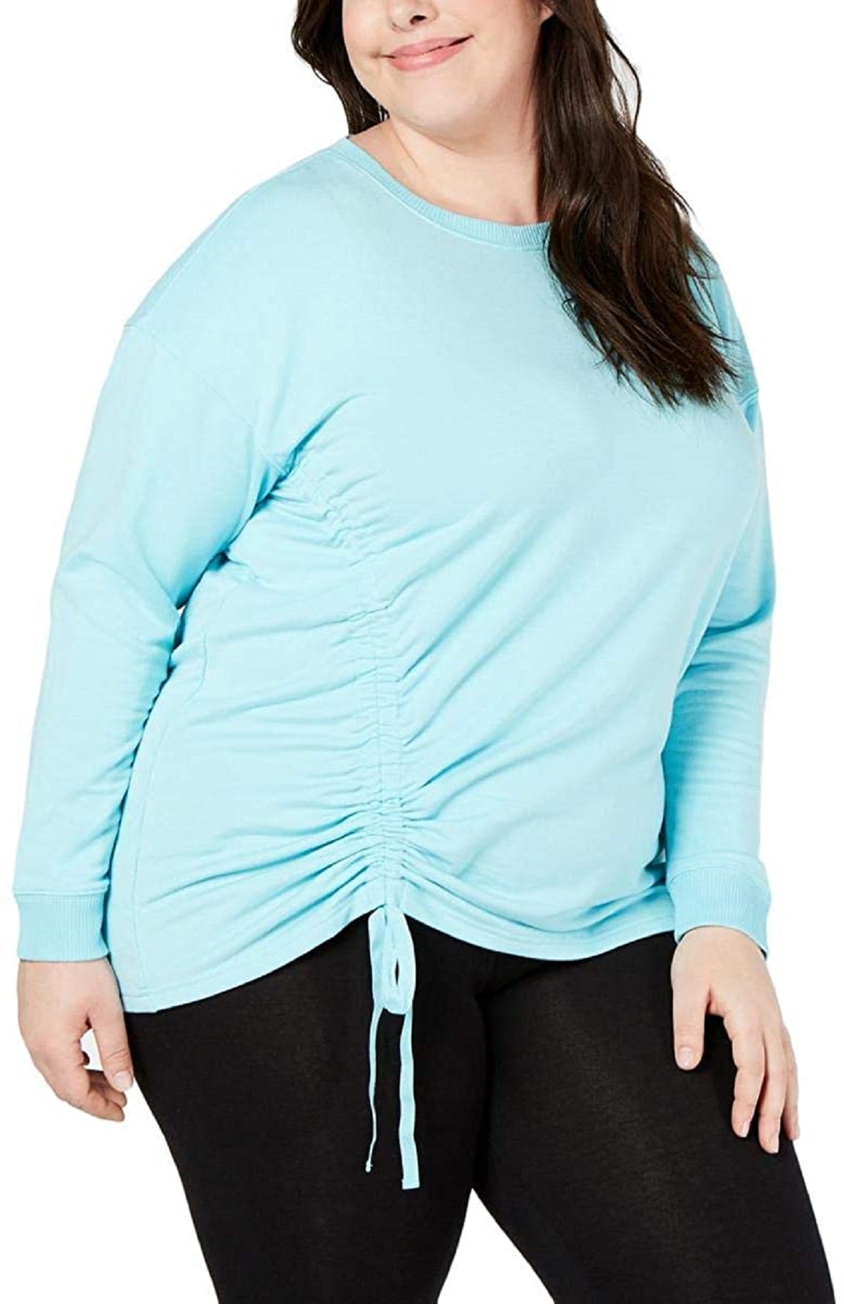 Ideology Plus Women's Crewneck Ruched-Side Top, Crystal Mist, 2X