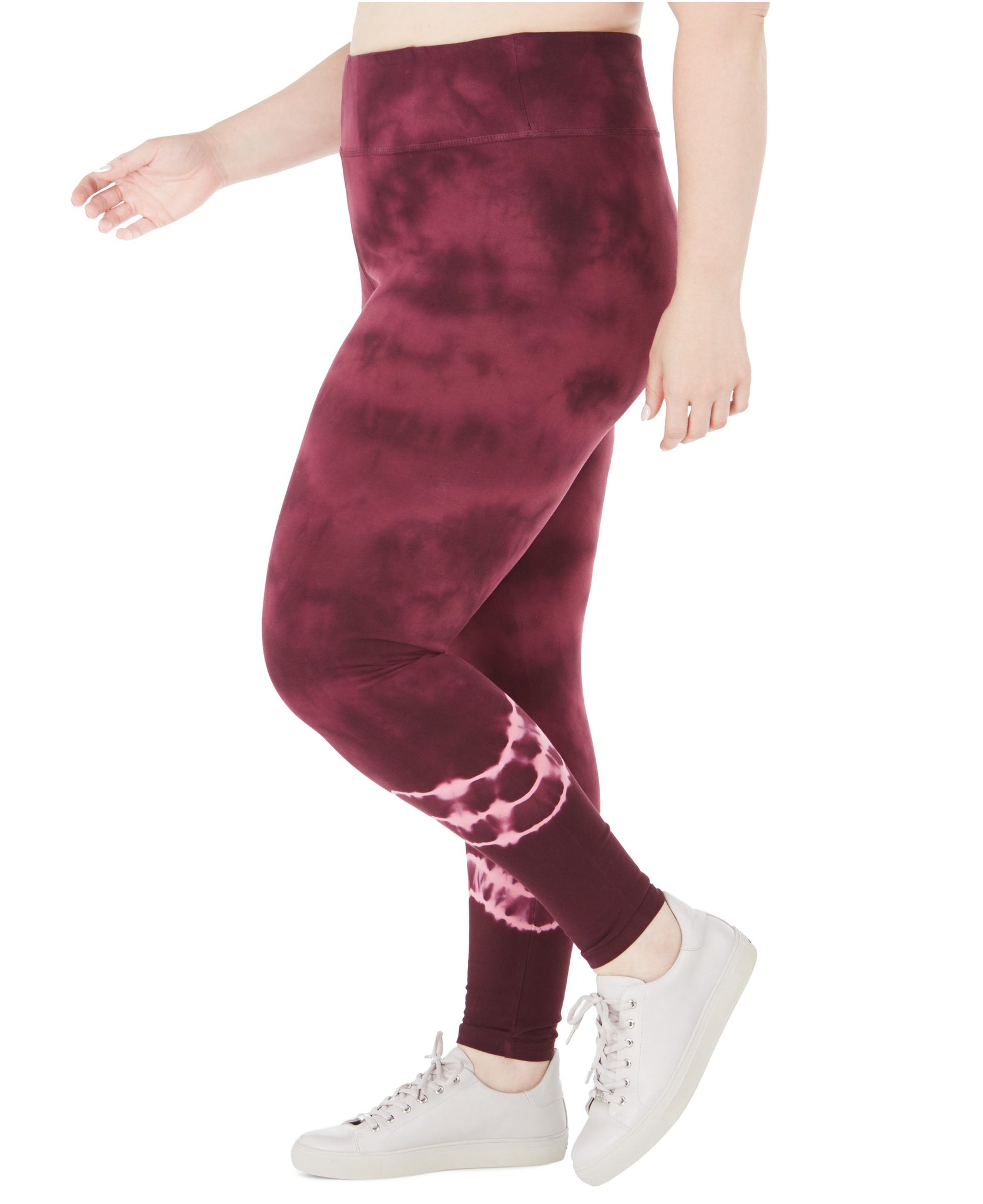 A fun tie-dye on tie-dye look, these plus size leggings from Ideology accent deep tones with a contrast print at the calf. Soft stretch fabric offers sleek coverage.