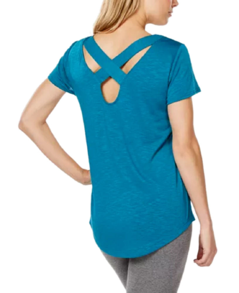 Ideology Women's Cross-Back Soft Athletic-Shirts, Caribbean Blue, XS