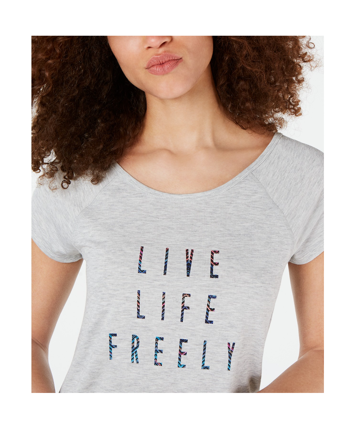 Live life freely in this comfy top from Ideology, a graphic T-shirt with a breathable V-back.