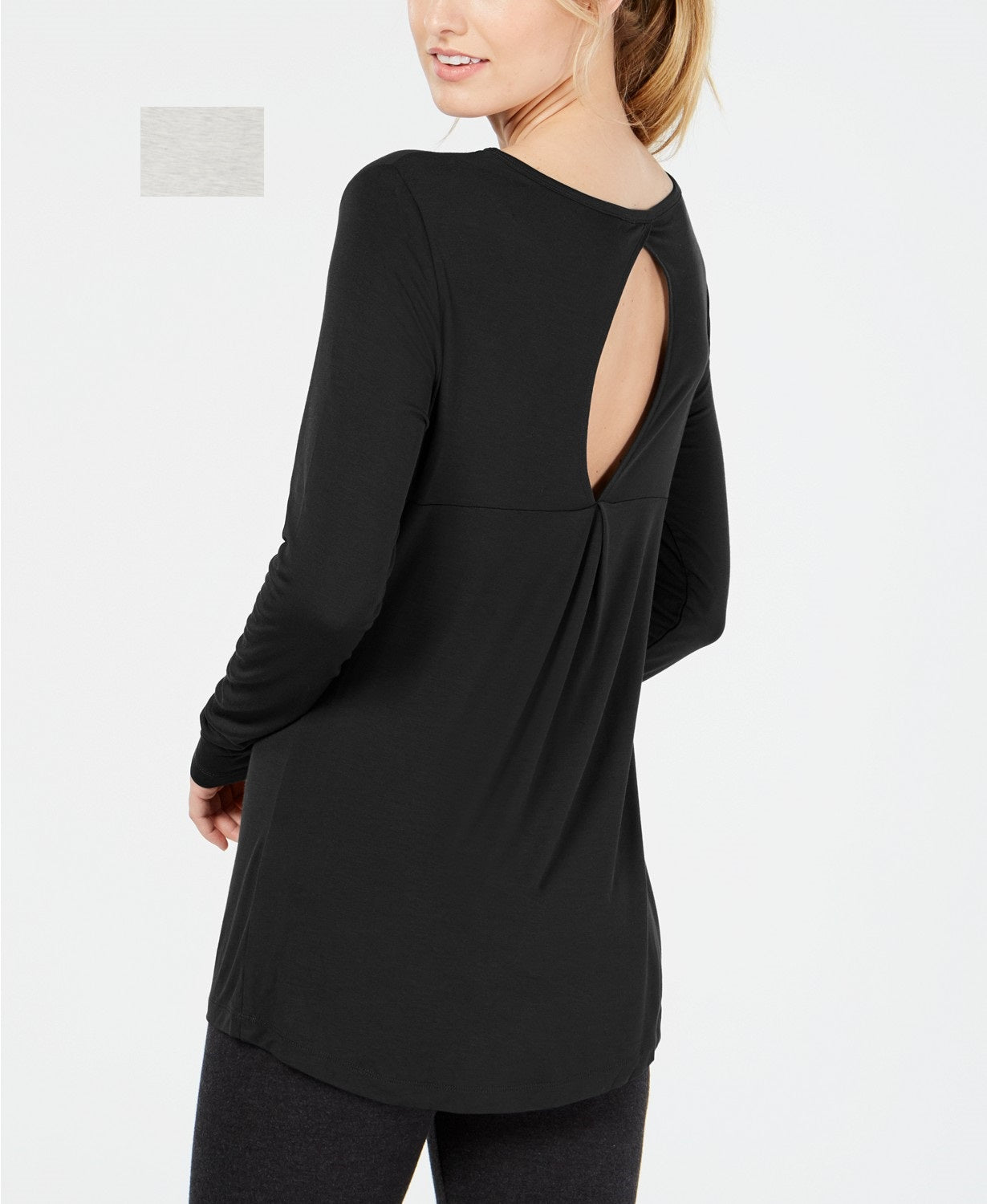 Ideology Women's Long Sleeves Keyhole-Back Athletic Top, Grey, Large