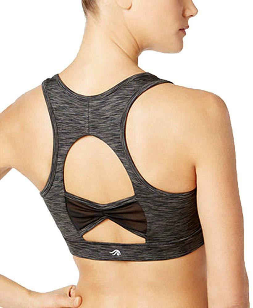 Ideology Women's Open Back Mid Impact Sports Bra, Gray, XS