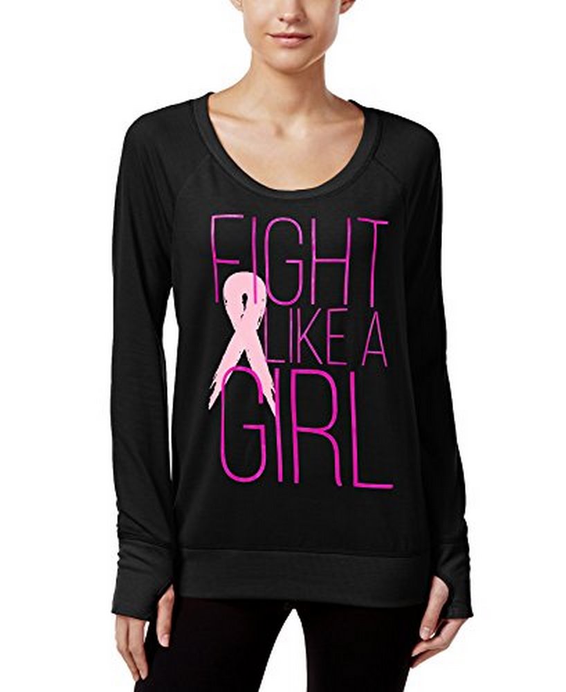 Ideology Women's Pink Ribbon Long-Sleeve Pullover, Black, M