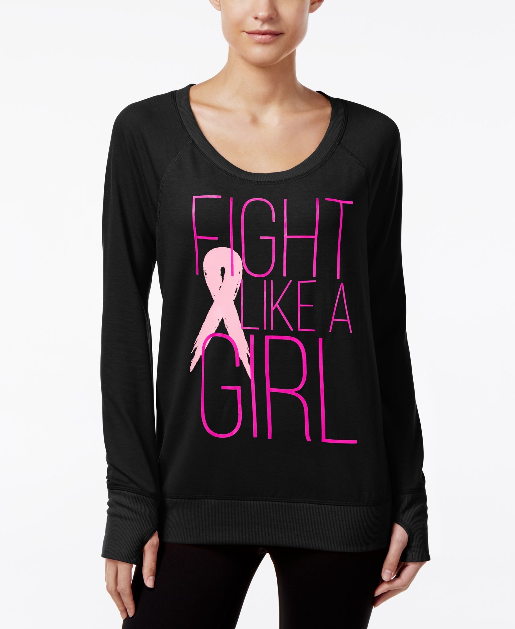 Ideology Women's Pink Ribbon Long-Sleeve Pullover BCRF, Black, M