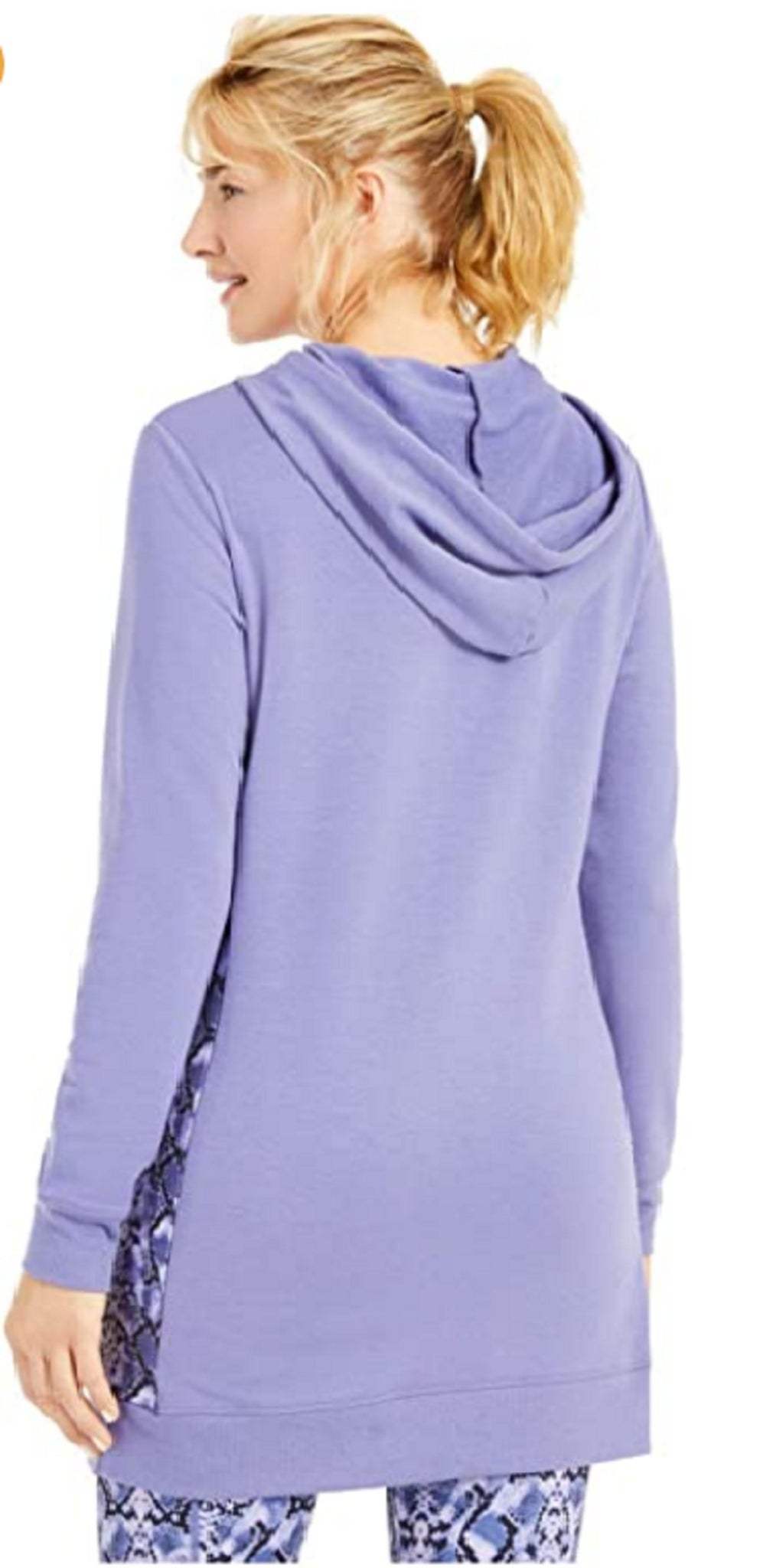 Ideology Women's Snakeskin Printed-Panel Athletic Hoodie, Luxe Iris, M