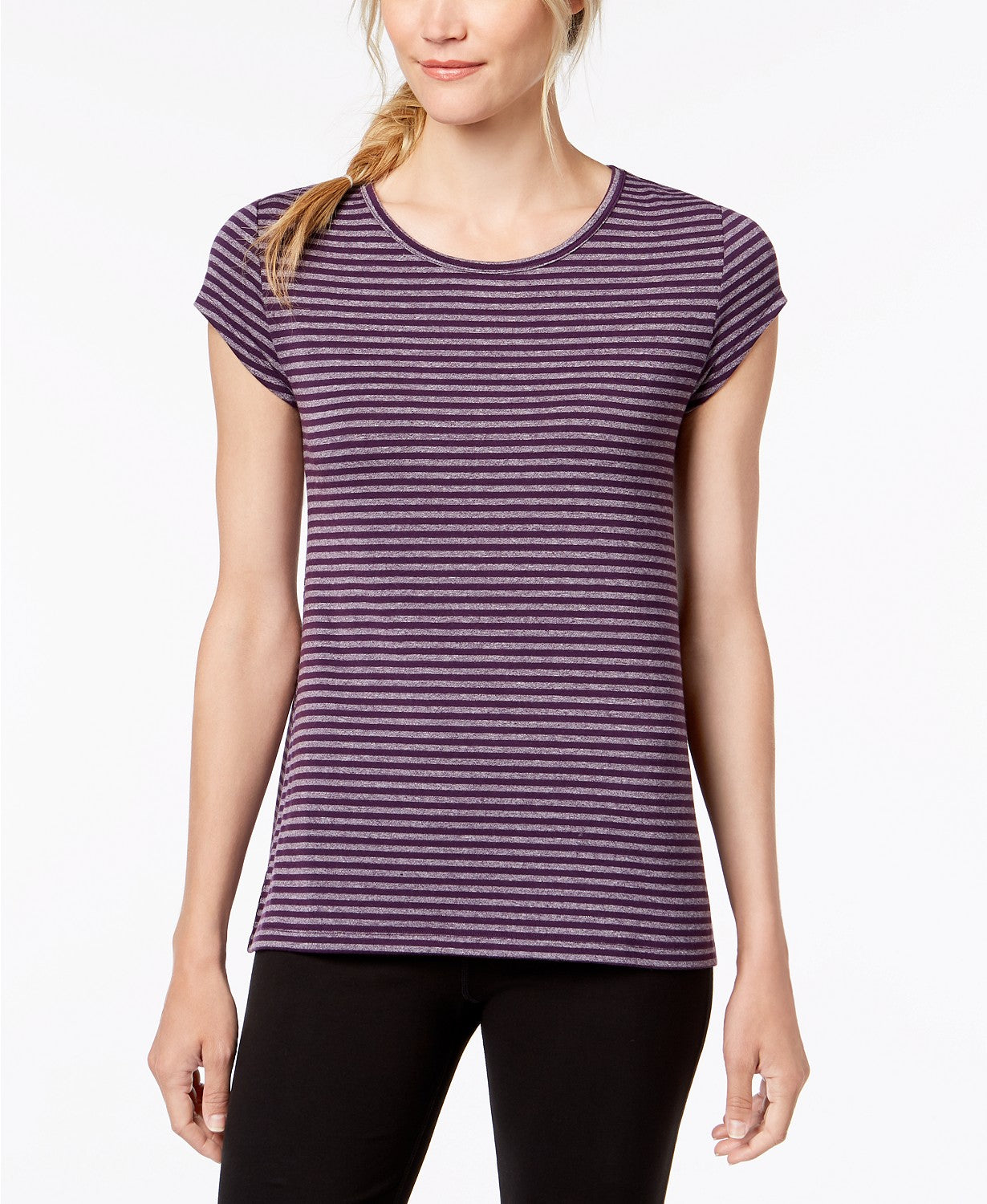 Ideology Women's Striped Cutout-Back Athletic Top, Eggplant Stripe, M