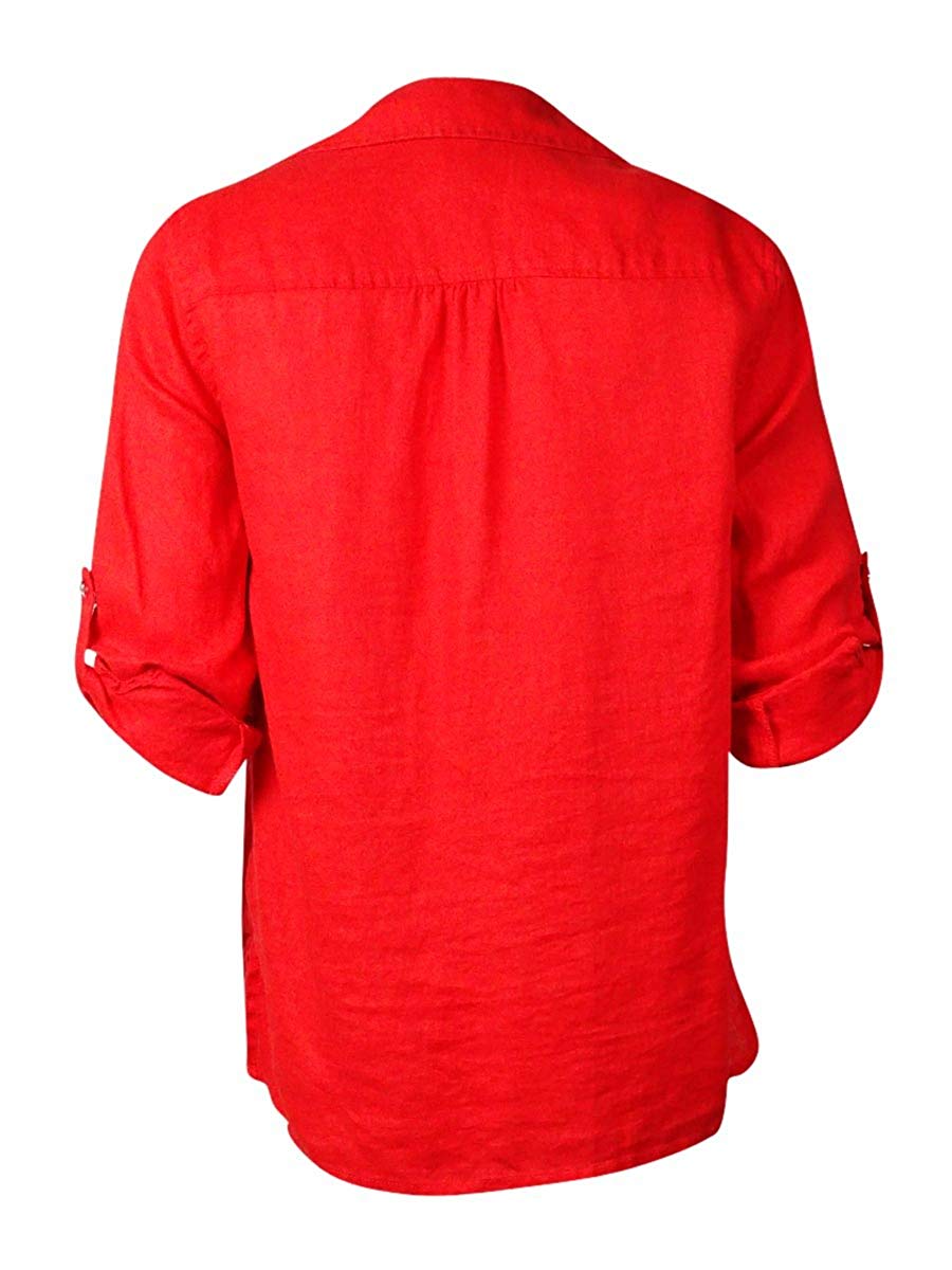 INC International Concepts Women's Rhinestone Button Linen Top (Red, 0)