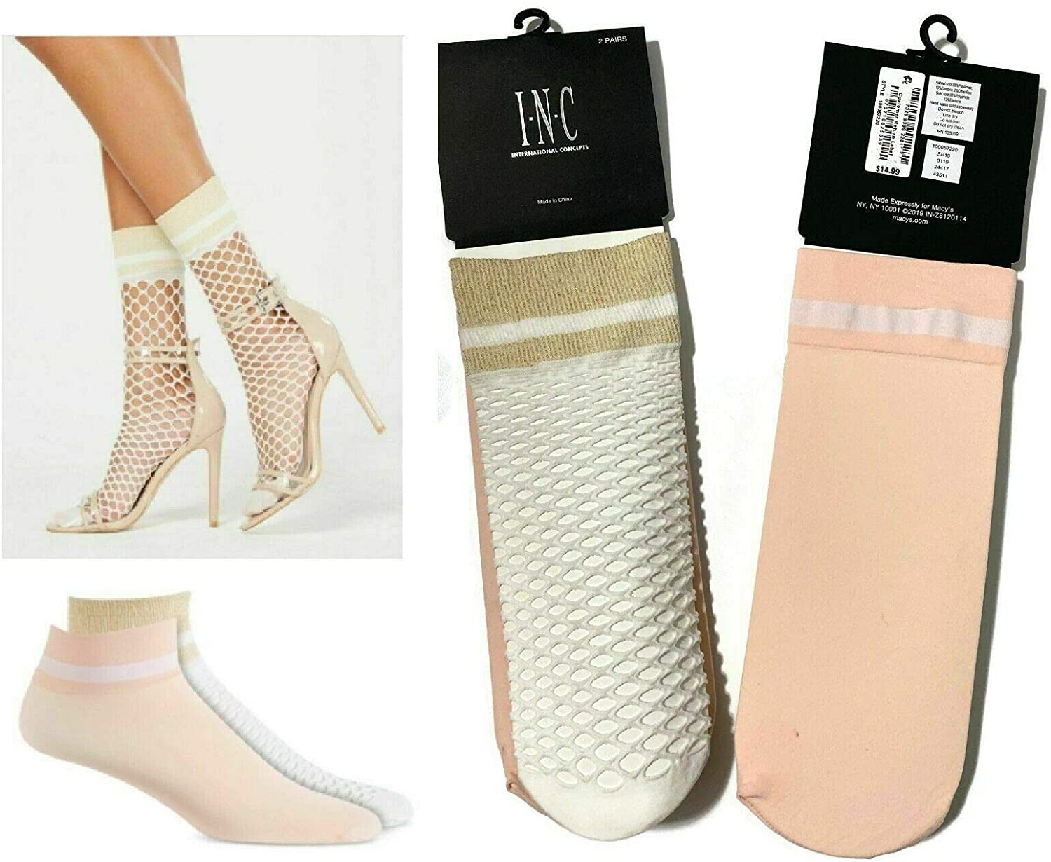 The I.N.C International Concepts two-piece ankle socks set is a show stopper merging Lurex® metallic fabric at the cuff with playful fishnet as well as a more subtle sheer texture for a fine finish.