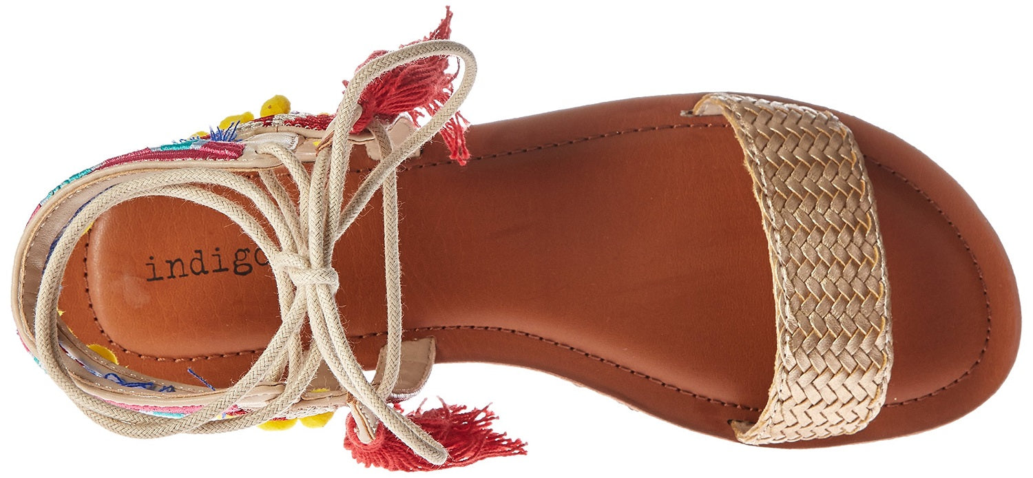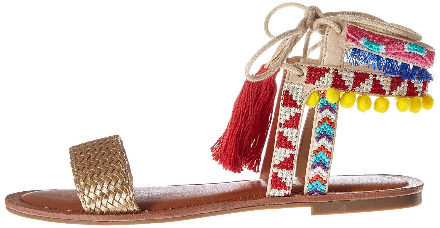 Indigo Rd. Women's Doe Lace-Up Tasseled Flat Sandal, Gold, Size 7