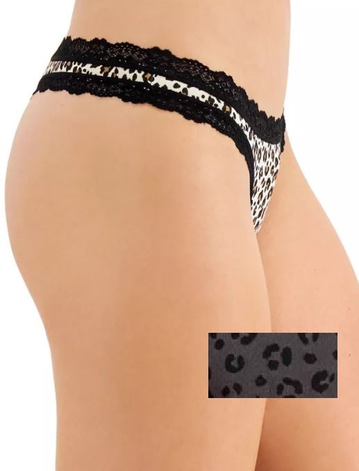 Jenni Women's Lace-Trim Thong, Tonal Leo Print, XXXL
