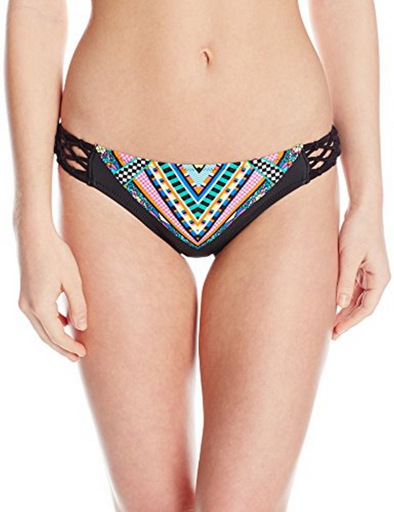 Jessica Simpson Women's Braided Hipster Bikini Bottom, Black, L.