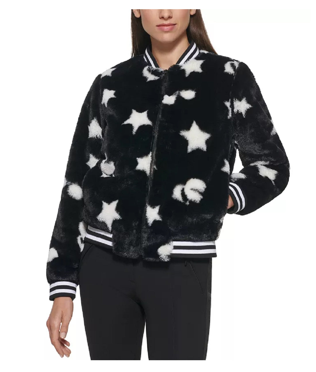 A stunning star motif brings a dreamy finish to this Faux Fur Jacket by Karl Lagerfeld Paris.