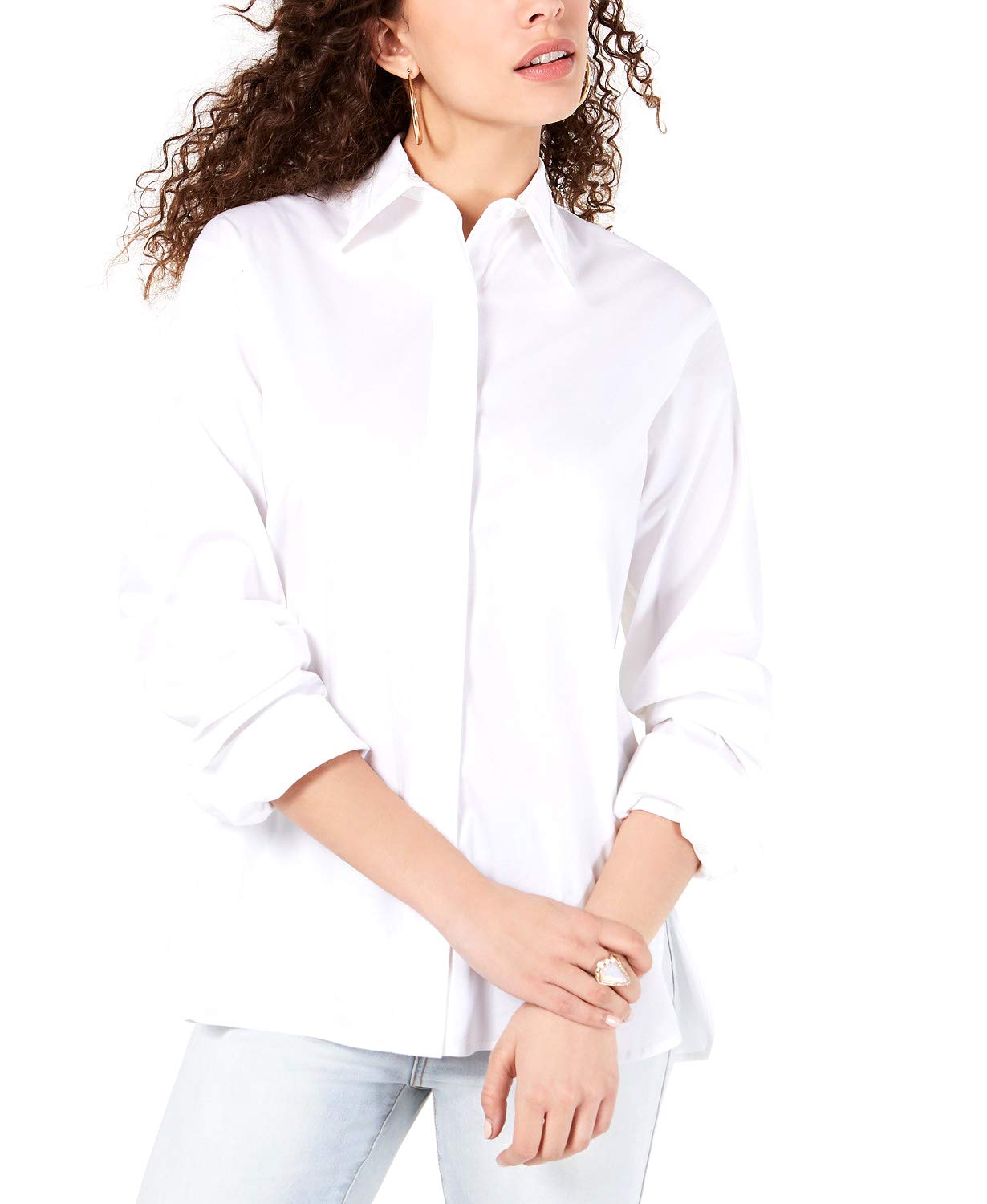 Kendall + Kylie Women‘s Cotton Cutout-Back Button Down Shirt, White, M