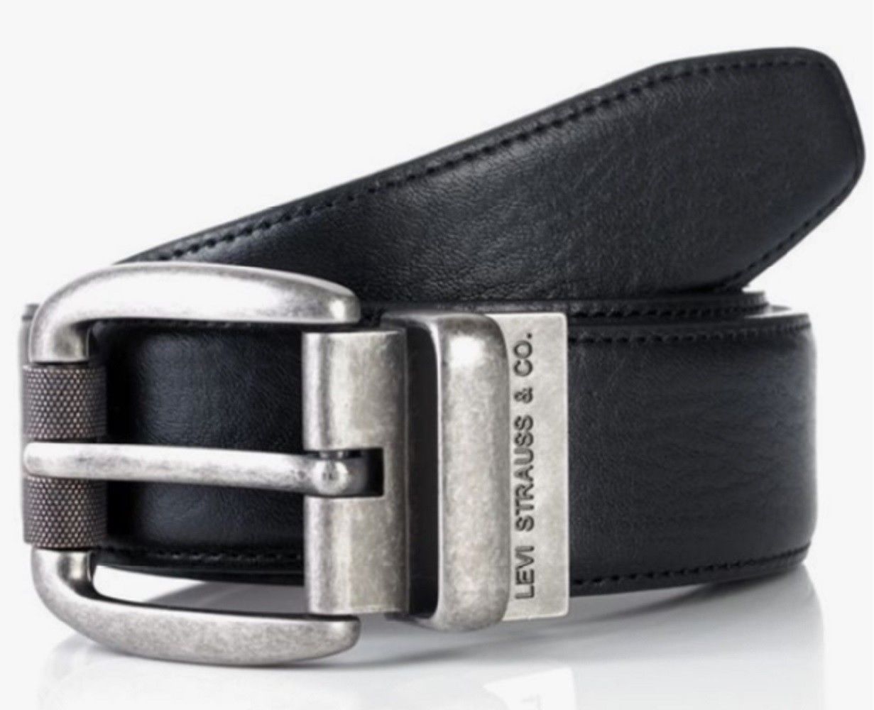 Levi's Men's Logo Buckle Reversible Belt, Black, 30-32 (S)
