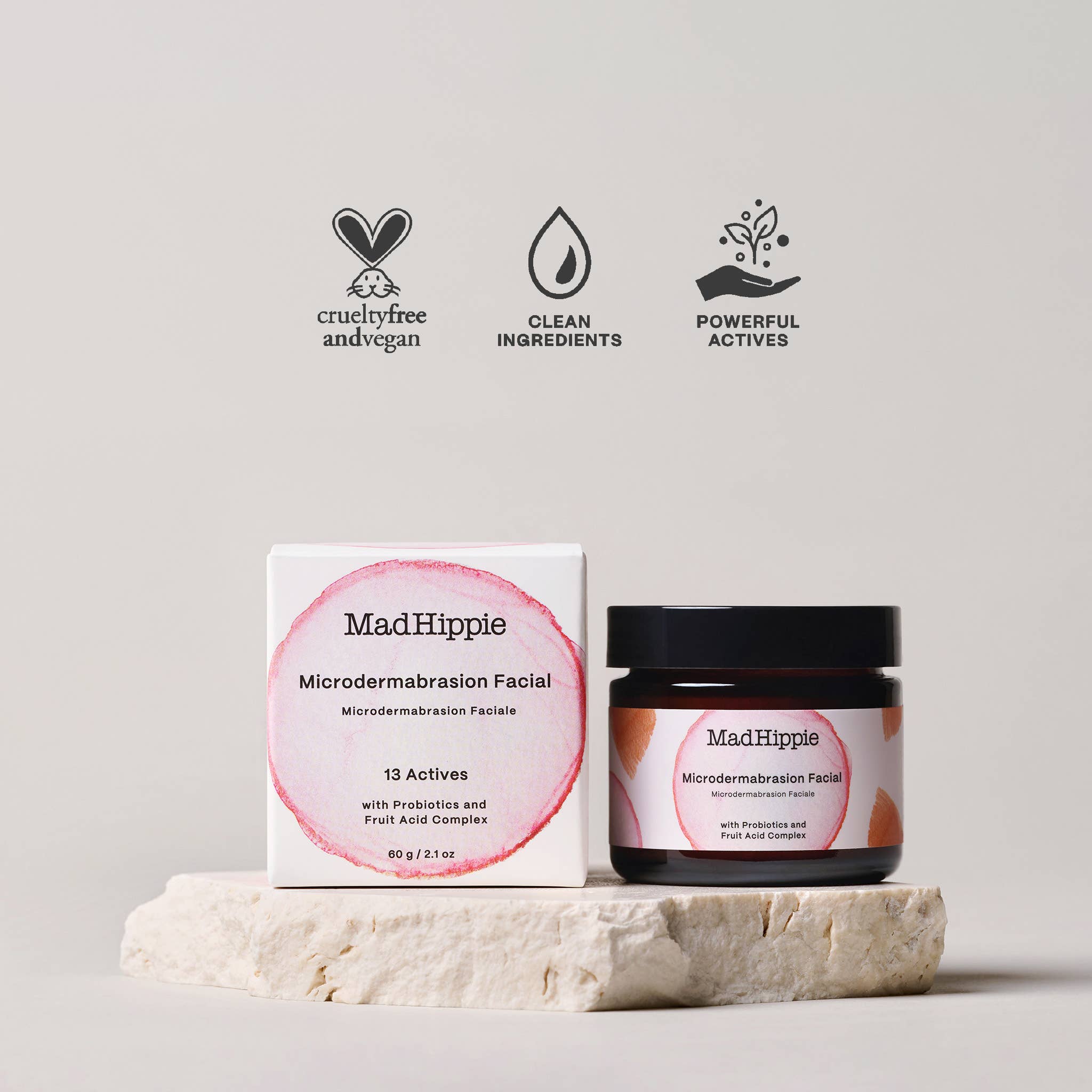 Micro-exfoliants join forces with 6 alpha hydroxy acids plus probiotics to brighten, soften & smooth. Physical exfoliants, bamboo & volcanic ash, gently buff away dry, dull skin, while half a dozen AHAs, including glycolic & mandelic acid, offer a gentle chemical exfoliation that leaves you glowing!