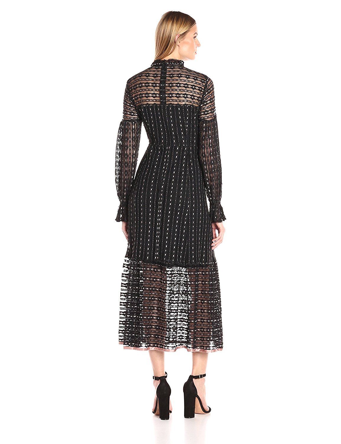 Nanette Lepore Women's V-Neck See Through Rhapsody Dress, Black, 0
