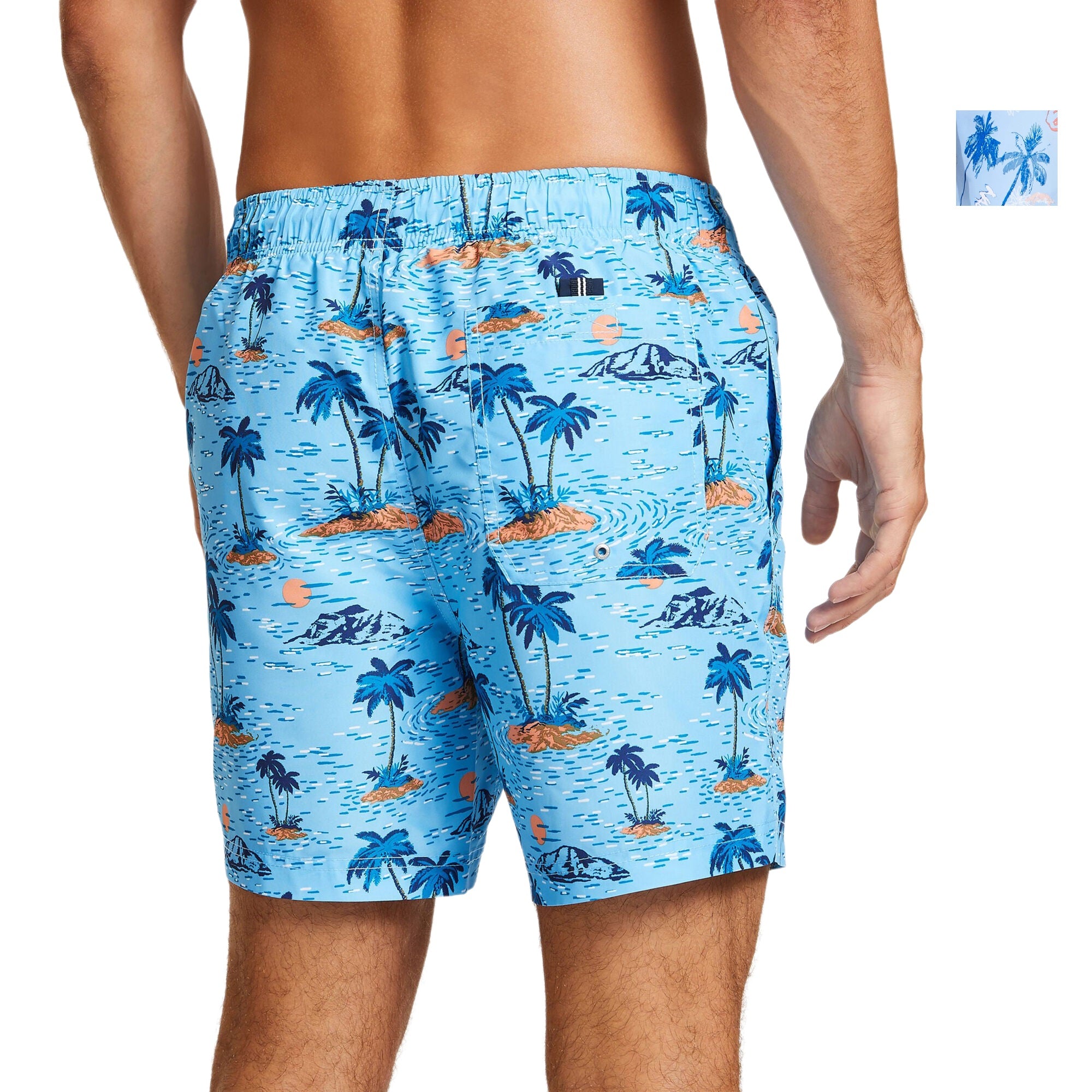 Nautica Men's Island Print 6" Elastic Waistband Swim Trunks, Blue, XXL