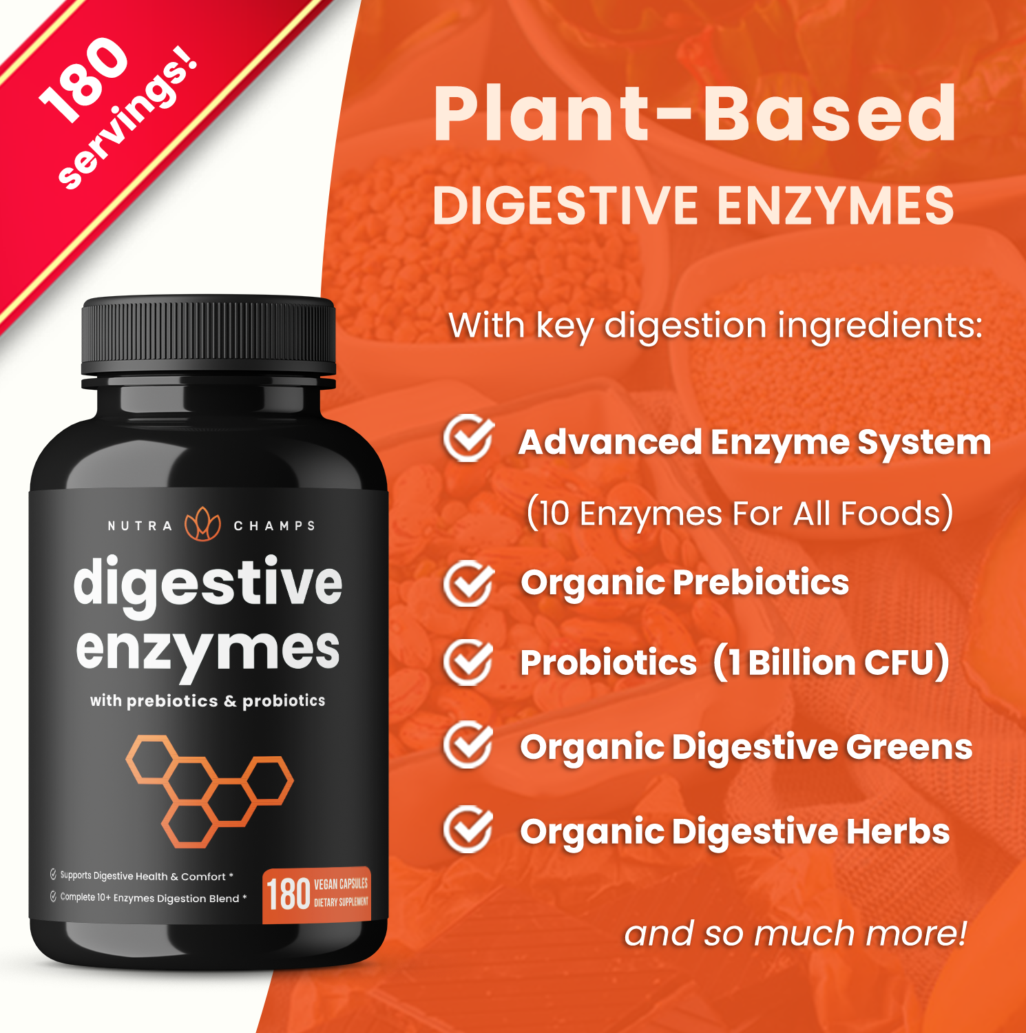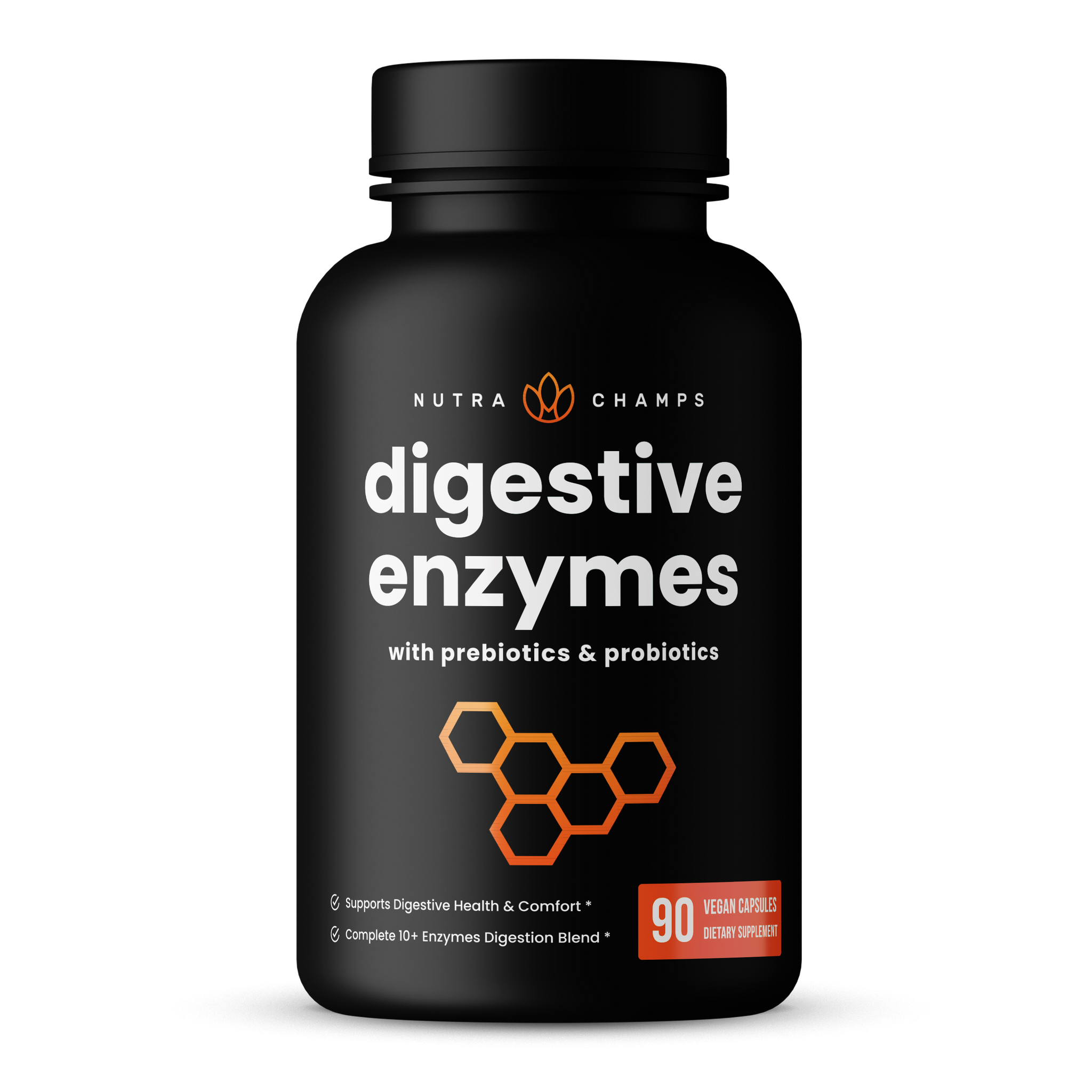 NutraChamps Digestive Enzymes represents one of the most impactful digestive enzyme formulations on the market today. With enzymes specifically selected to help digest all five major food groups — including dairy, fats, protein, carbs, and fiber — this premium supplement is a one-stop-shop for optimal digestive health.