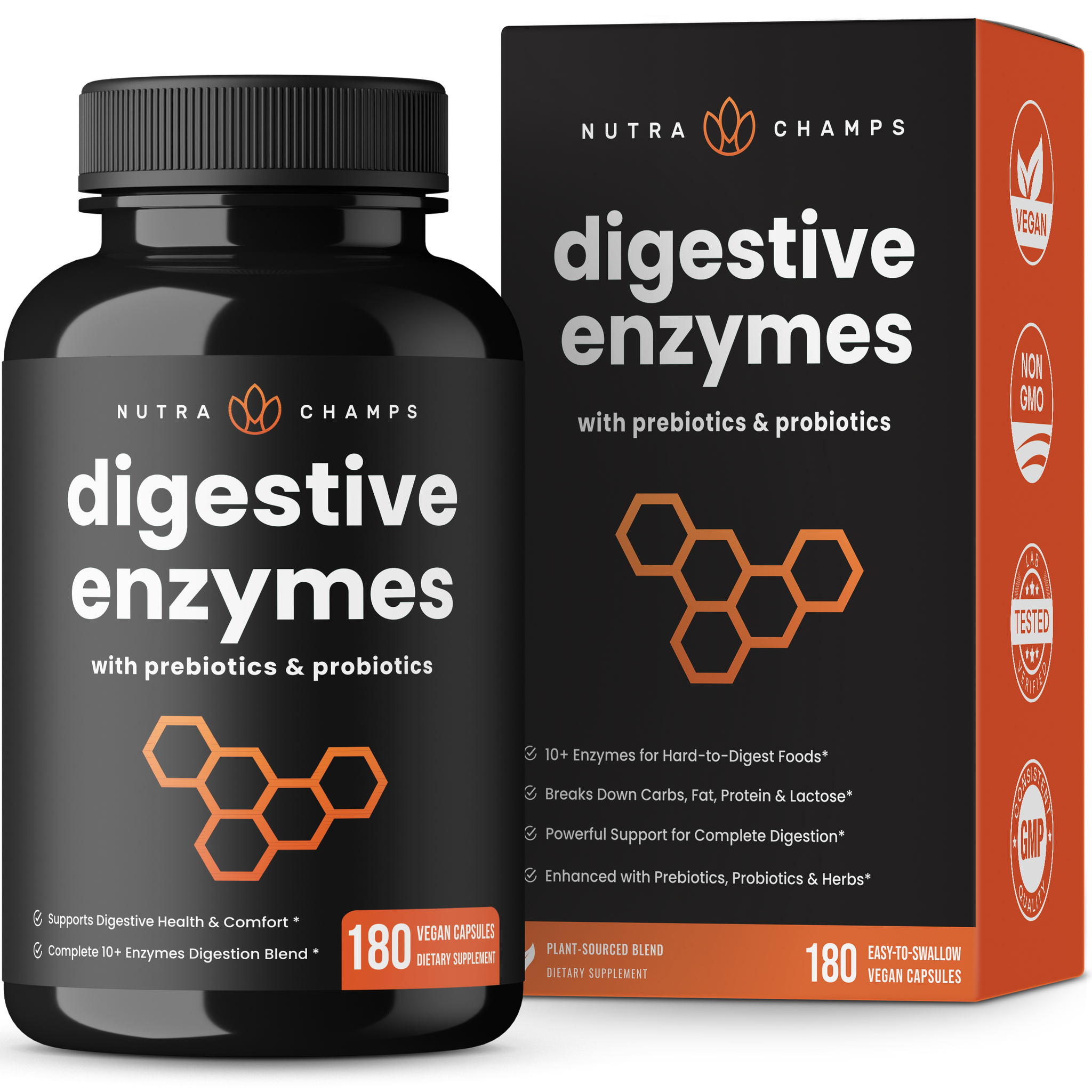 NutraChamps Digestive Enzymes represents one of the most impactful digestive enzyme formulations on the market today. With enzymes specifically selected to help digest all five major food groups — including dairy, fats, protein, carbs, and fiber — this premium supplement is a one-stop-shop for optimal digestive health.