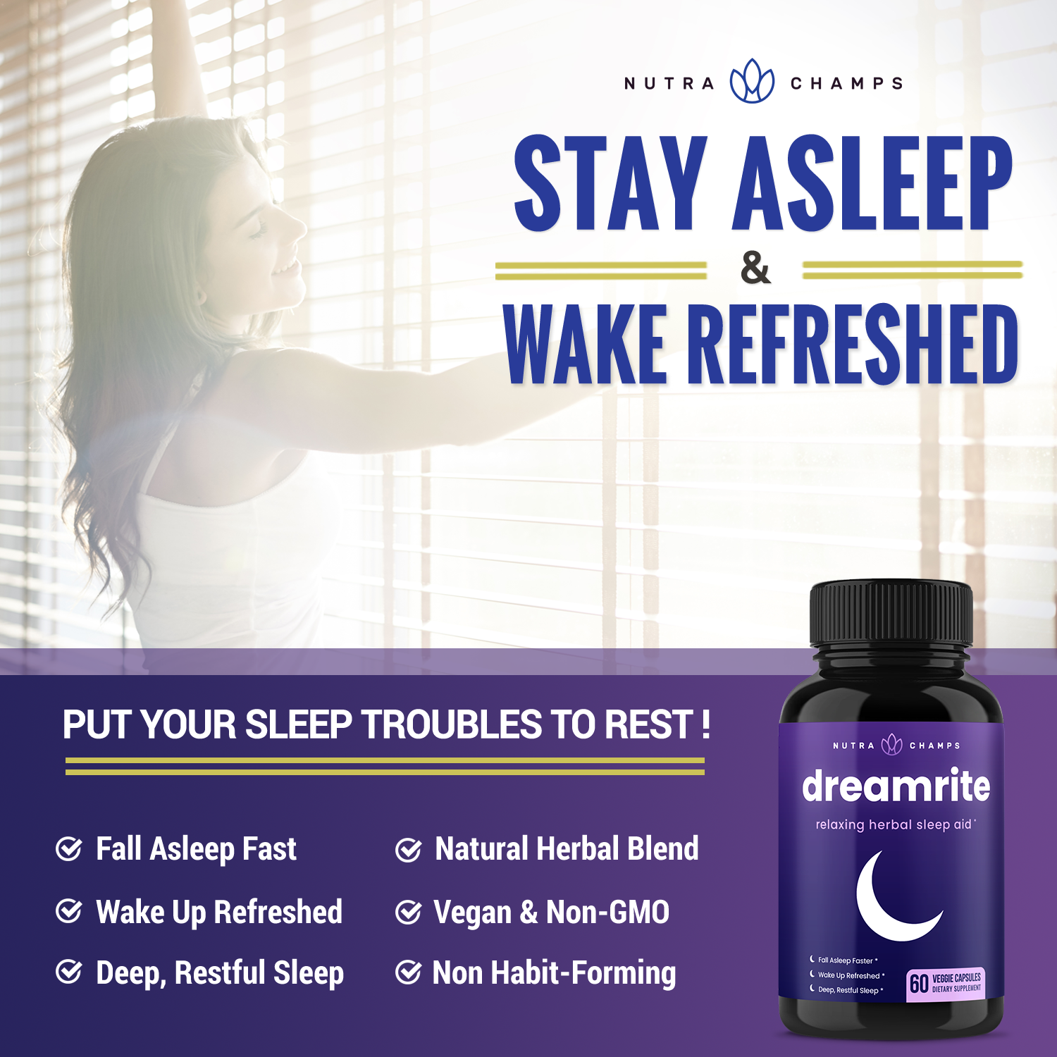 Have you been struggling to get a good night’s sleep? It’s time to put your sleep troubles to rest once and for all. Designed to help the body wind down and turn off the lights for a deep and restful sleep, dreamrite is an herbal sleep aid made with safe, non-habit forming ingredients.