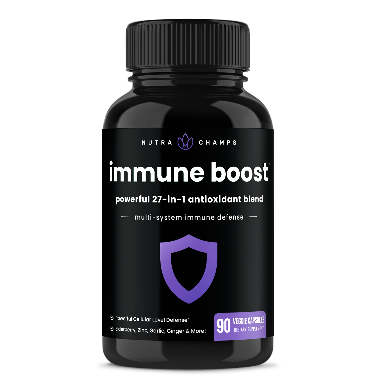 Meet the Ultimate 27-in-1 Immunity Supplement. The potent antioxidants in NutraChamps Immune Boost bring you up to a whole new level of immune support. Avoid sniffles, sick days, and colds in any season by boosting all areas of your body's natural defenses. This potent blend contains a mountain of essential vitamin, mineral, and herbal nutrients clinically shown to strengthen the body and protect key systems.