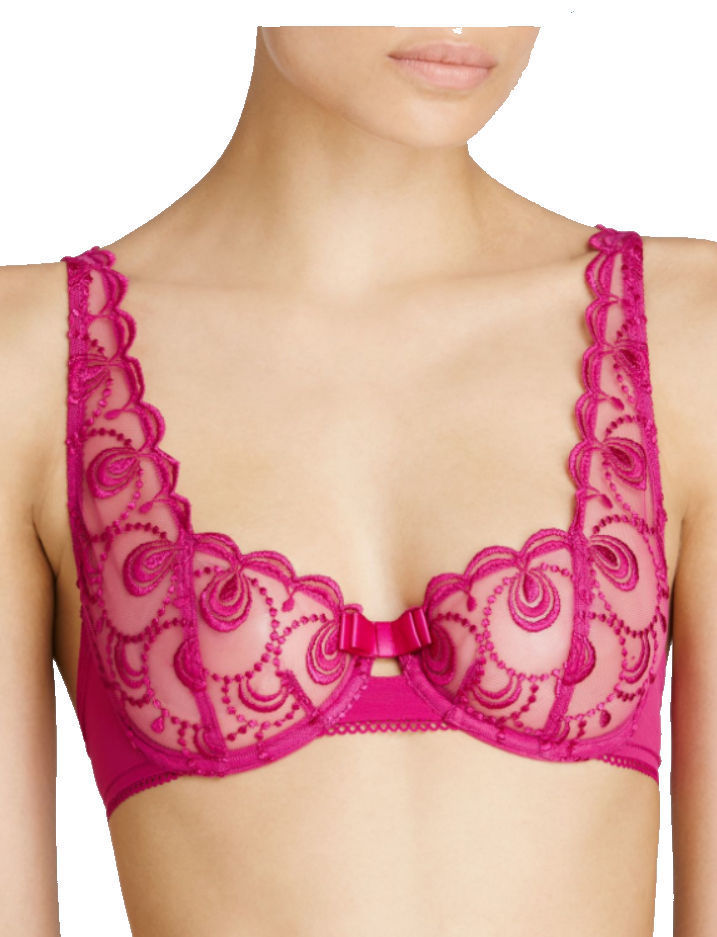 Positively decadent in scalloped and swirled lace, this Passionata demi bra makes an elegant statement underneath it all. Style #5415 Plunging demi neckline with center gore bow and cut-out, . European sizing - please refer to the size guide for US conversion. Polyester/polyamide/elastane. . Imported. Color: pink