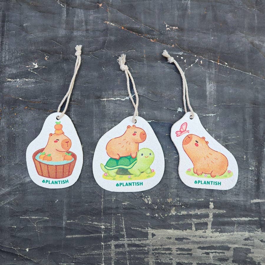 Introducing our new Set of 3 Scrubby Capybara Pop up Sponges, designed with capybaras, an internet sensation. Made from natural cellulose fibres, our sponges offer thorough cleaning without any plastic's footprint.