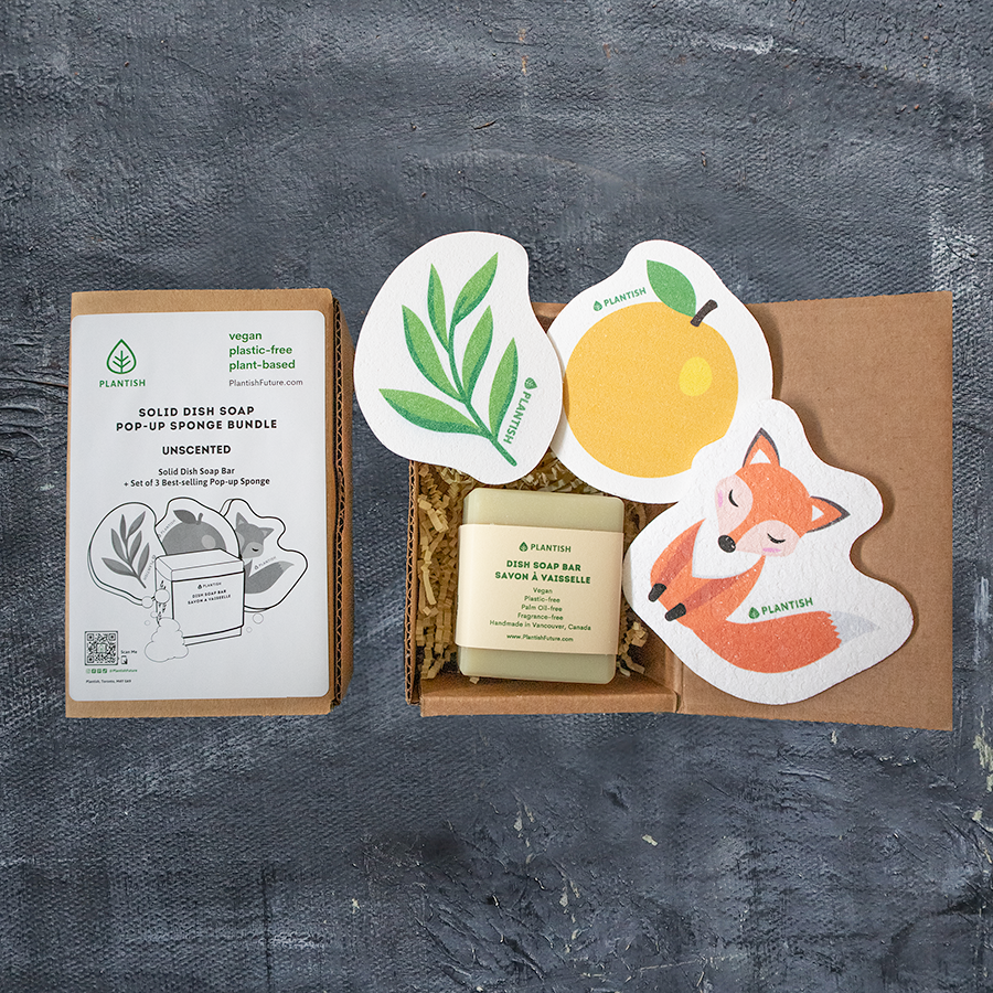 Our solid dish soap lasts longer than traditional liquid soap and suds well to effectively cut grease and stubborn stains. This bundle set makes the perfect eco friendly gift that will be well loved for anyone looking to minimize waste in their kitchen!