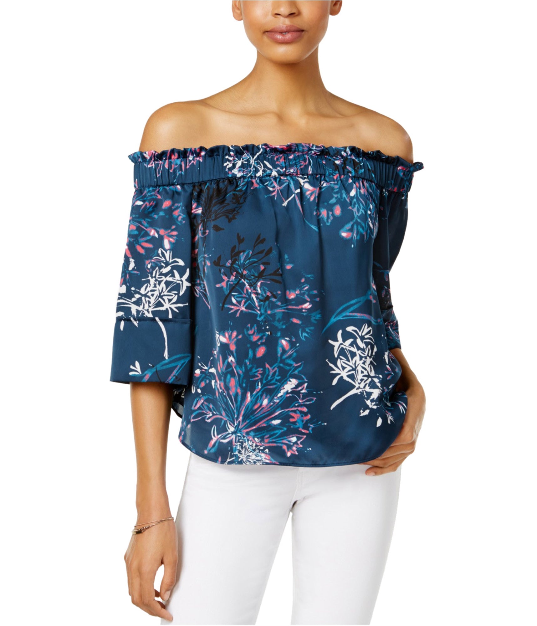 RACHEL Rachel Roy Women's Printed Off-The-Shoulder Pullover Top (Blue, XS)