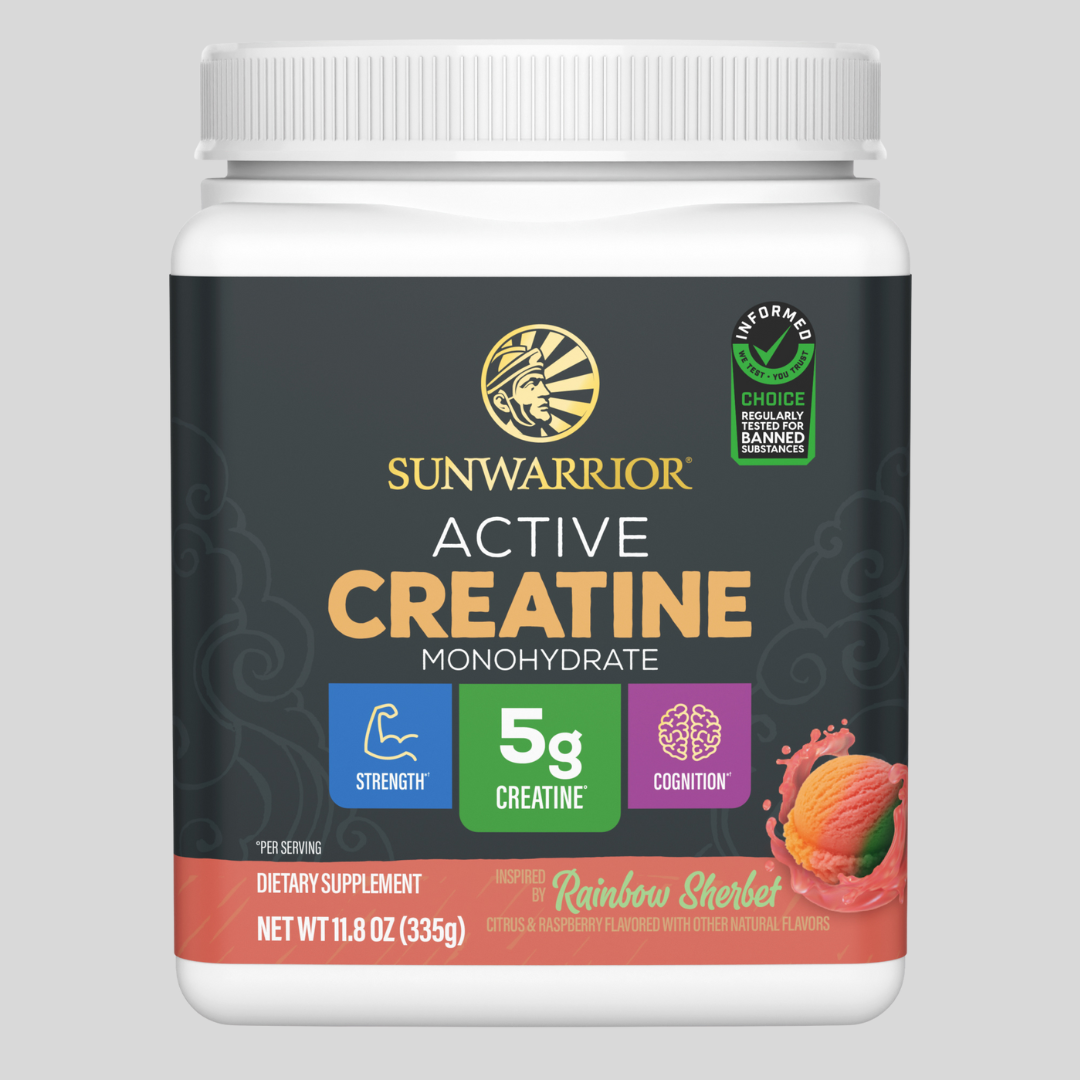 Fuel strength, focus, and recovery with Sunwarrior’s Rainbow Sherbet Active Creatine Drink Powder. Our vegan, soy-free creatine formula is crafted to enhance muscle performance and energy production, making it an essential addition to any fitness routine.