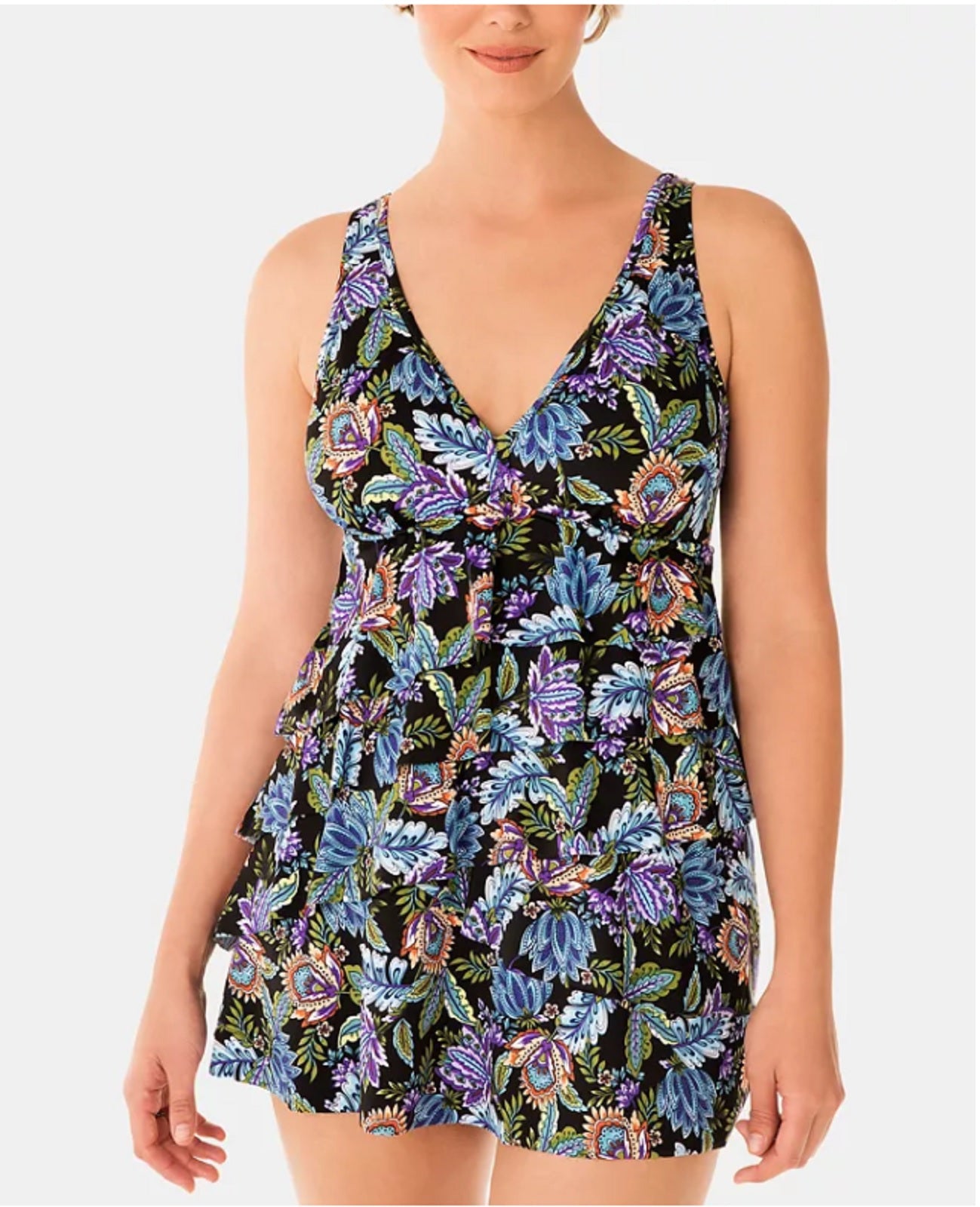Flirty florals and slimming technologies combine on this ultra-flattering swimdress from Swim Solutions a fresh and fabulous alternative to your typical one-piece.