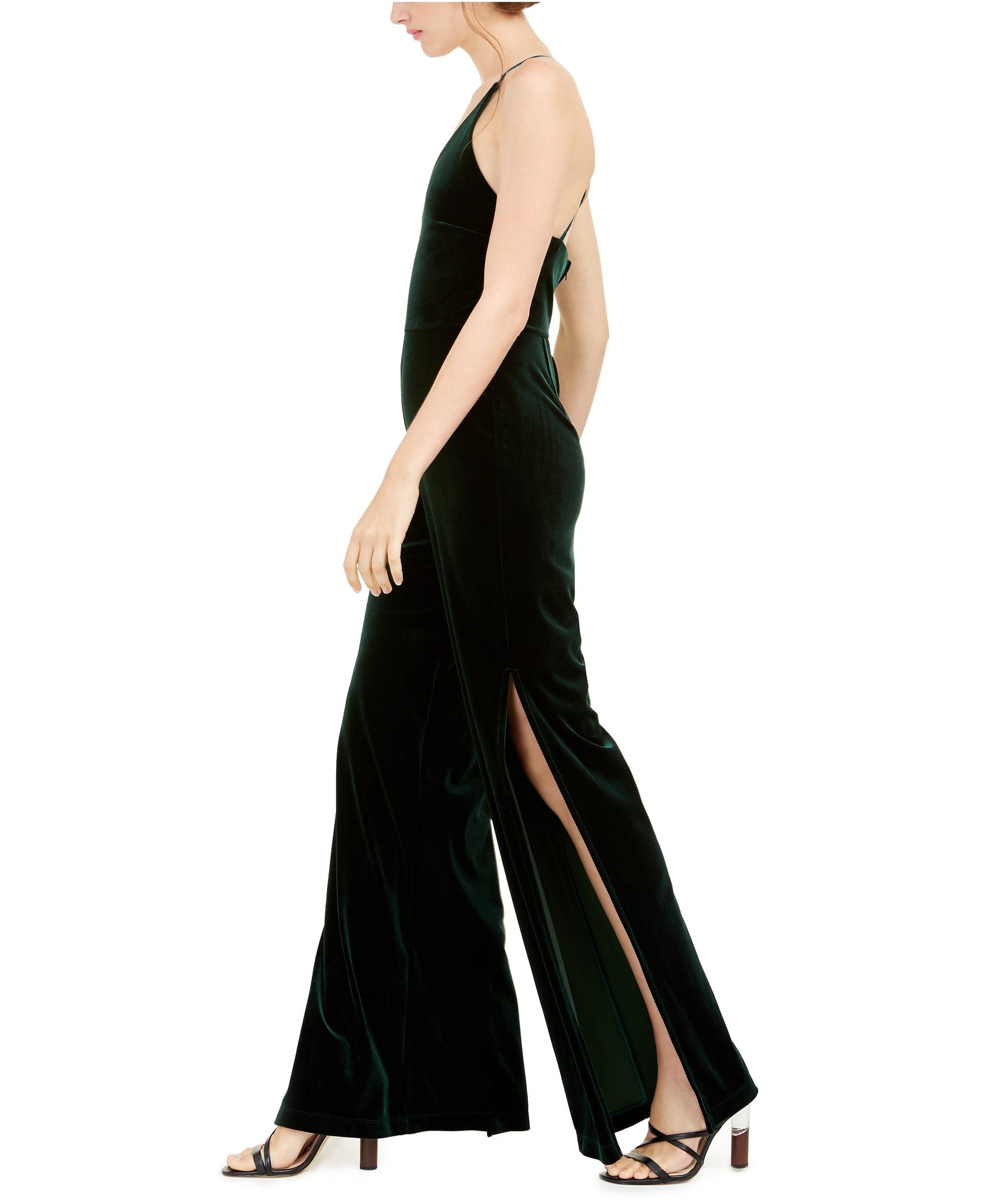 Teeze Me Juniors' Velvet Spaghetti Strap V-Neck Jumpsuit, Emerald, 7/M