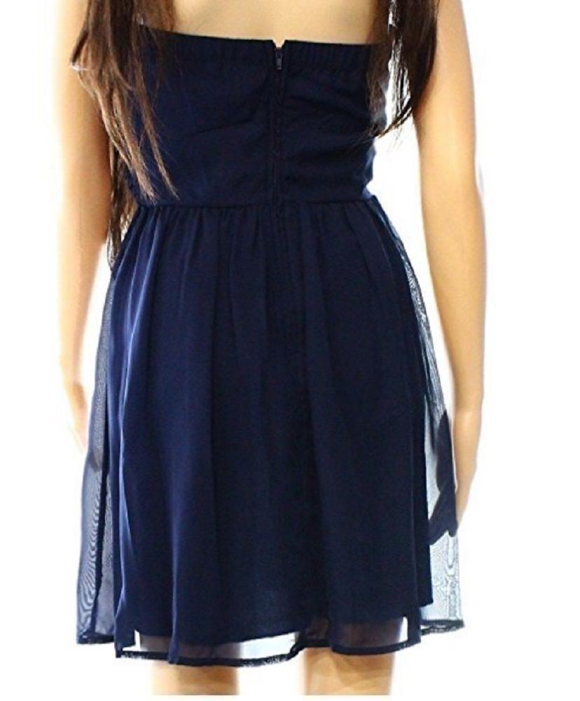 Trixxi Junior Strapless Chiffon Sheath Dress, Navy, 11