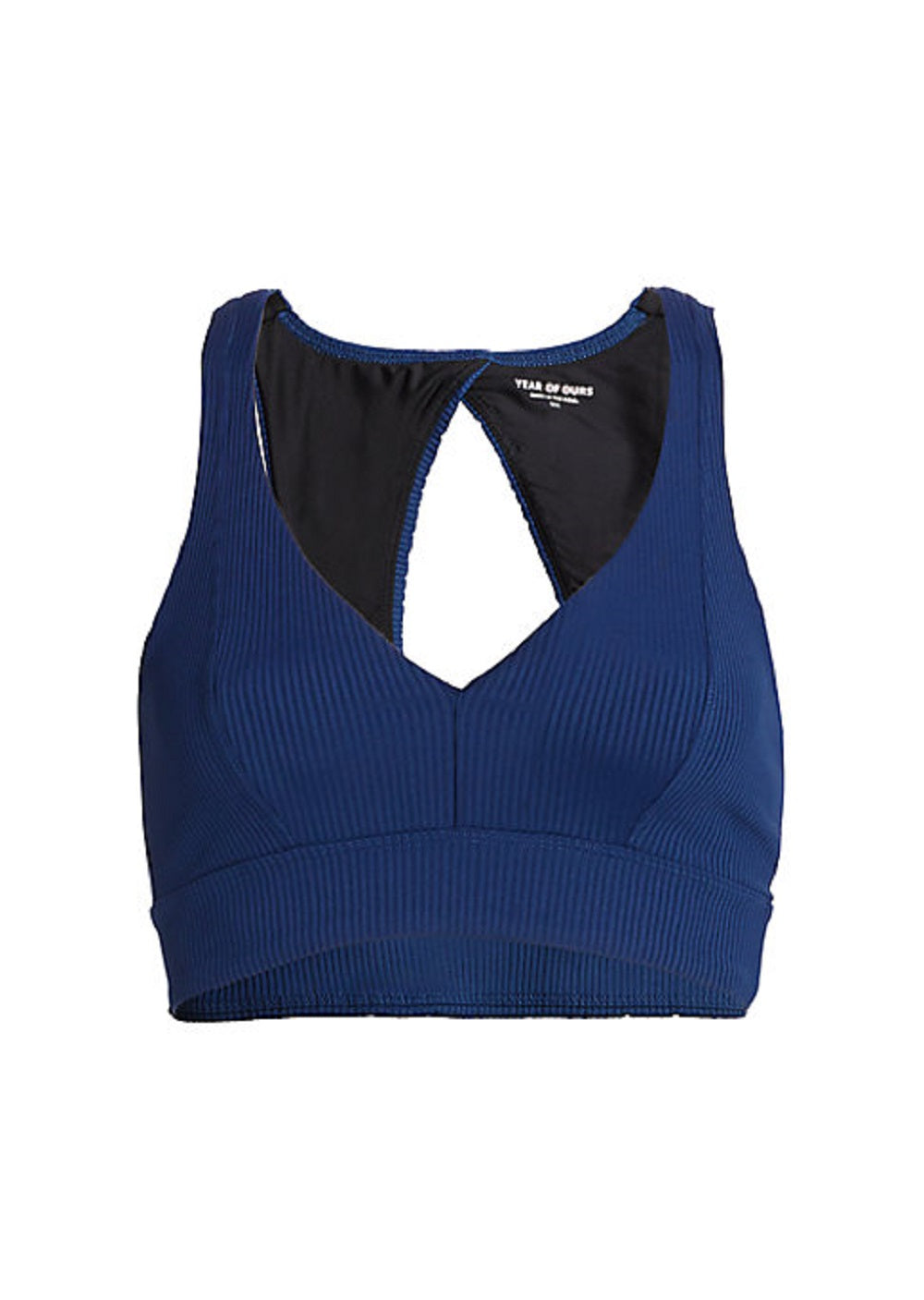 Year of Ours Women's Victoria Ribbed Sports Bra, Navy Blue, XS