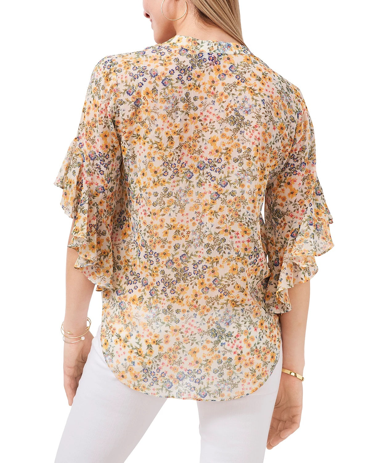 Vince Camuto Women's Daisy Patch Flutter-Sleeve Top, New Ivory, M