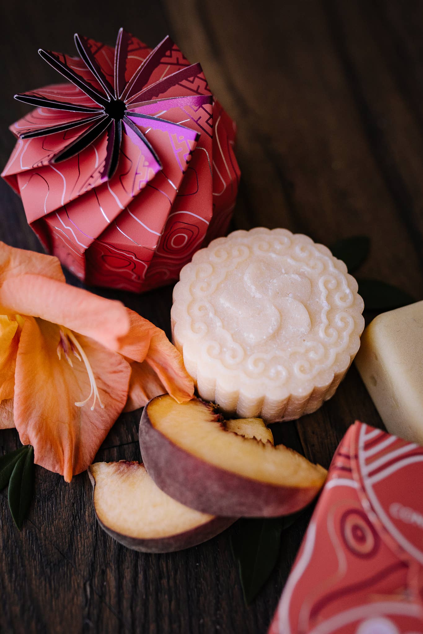 Sweet, crisp peach blends beautifully with tart, floral hibiscus in this limited-edition shampoo and conditioner bar with pink packaging. 20% of each bar purchased goes to the National Breast Cancer Foundation to help support breast cancer education and screening, as well as patients and survivors. These bars are handcrafted with the same Longsheng Rice, natural ingredients, and beauty rituals used by the Red Yao for centuries. Viori™ shampoo bars are sulfate-free, paraben-free, phthalates-free, pH balanced, natural, 100% vegan, plastic-free, sustainable, cruelty-free, and ethically sourced. Bamboo holders sold separately.