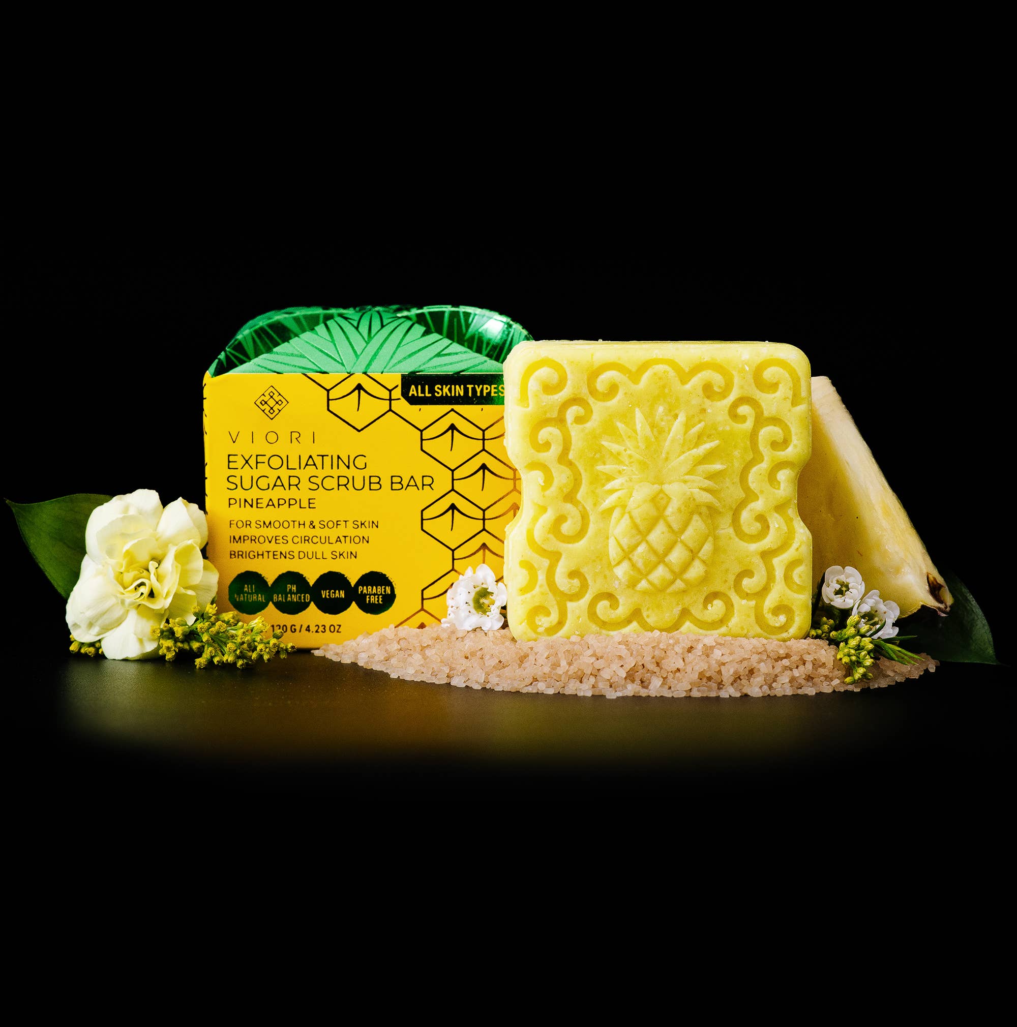 Whether you’re prepping for the perfect tan or keeping your skin fresh and smooth all summer, the Pineapple Sugar Scrub Bar is your new must-have. Infused with tropical pineapple enzymes and fine sugar crystals, this bar gently exfoliates to buff away dry skin, reveal a silky glow, and leave you smelling like a summer dream.