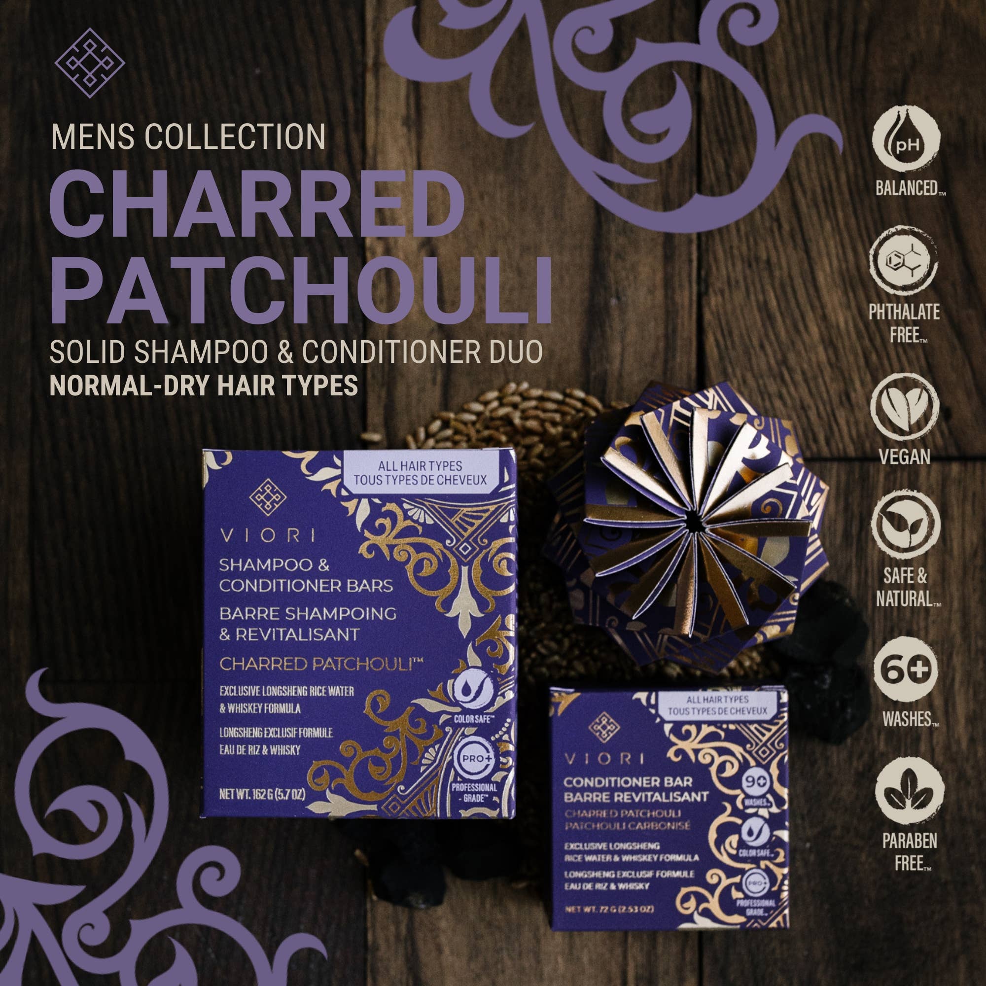 Our Men’s Starter Kit is the ultimate grooming upgrade—featuring a full-size Islay Whisky-Infused Shampoo Bar, Conditioner Bar, and a sleek wooden bar holder to keep your routine clean and elevated. Infused with Longsheng Rice Water and antioxidant-rich single malt Scotch whisky from the island of Islay, this bundle delivers hydration, strength, and shine with a masculine edge.